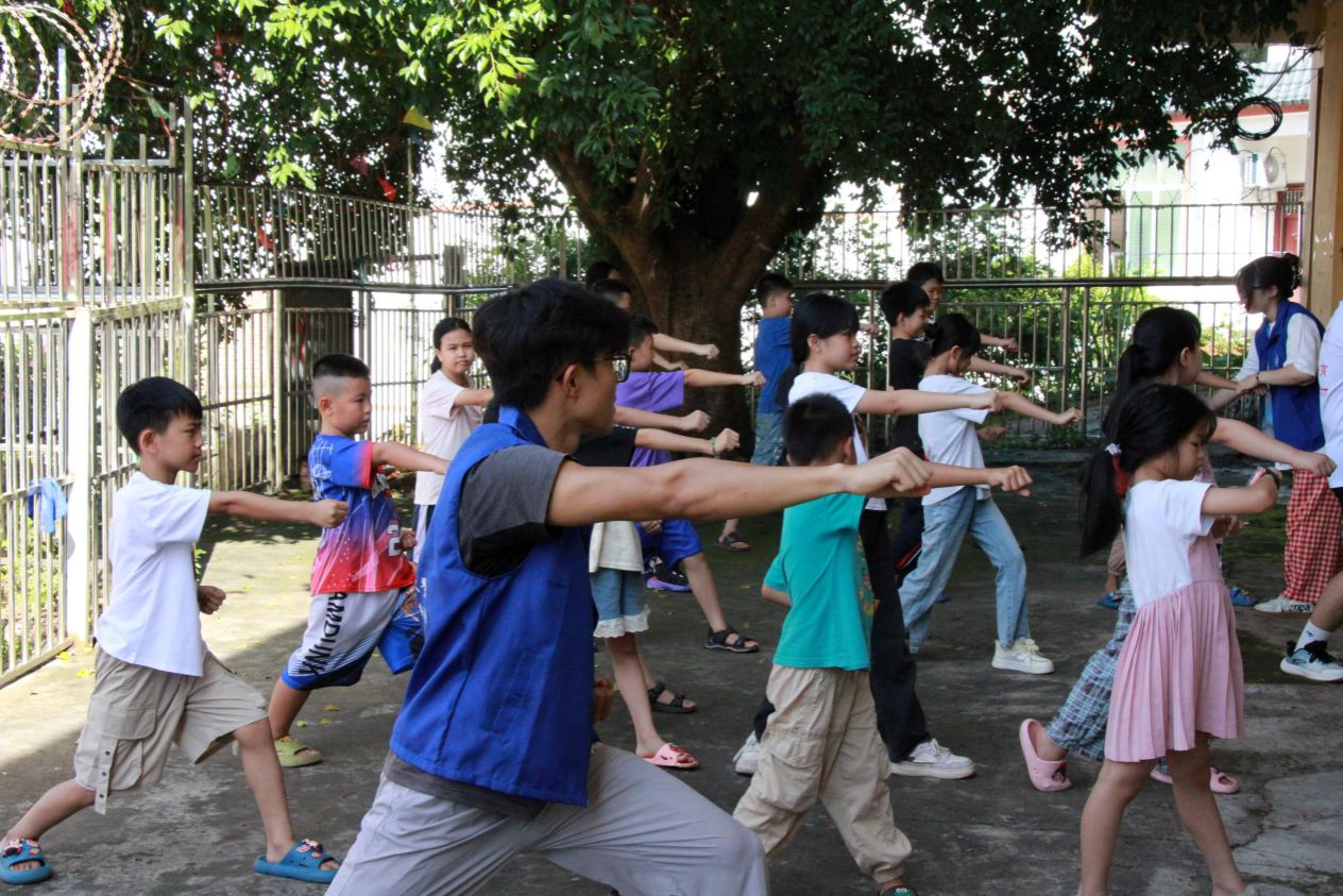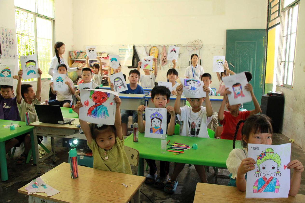在琴清小学的教室里,“小烛光”志愿服务队以多元课程开启乡村孩子的智慧之窗。武术课上,队员们带领孩子们练习五步拳;科学实验课上,队员演示的“自制发电机”实验让孩子们发出阵阵惊呼,科学的种子也随之在他们心中种下;“这是苗族的银饰,那是壮族的绣球……”通识教育课上,队员展示着各民族服饰图片,孩子们拿起画笔,在纸上勾勒出心中五彩斑斓的民族盛装;手工课上,手工绣球DIY让孩子们在剪裁粘贴中触摸传统文化的温度;音乐课上,歌曲旋律由稚嫩童声合唱而出,回荡在村落上空;舞蹈课上,简单灵动的舞步跳出了孩子们对生活的热爱。教室里的每一堂课都像一扇窗,让孩子们看到了更广阔的世界。