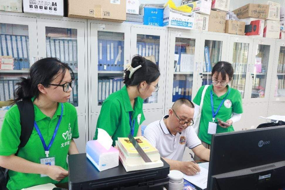为进一步提升学生普通话水平、全面了解学生学习与生活情况,在前两日调研的基础上,7月18日,best365足球官网文学院“星火”推普助力乡村振兴服务团调研组继续深入龙岸镇的龙岸镇中心小学和德山中学以及罗城仫佬族自治县仫佬族博物馆博物馆、石围古村开展调研活动。