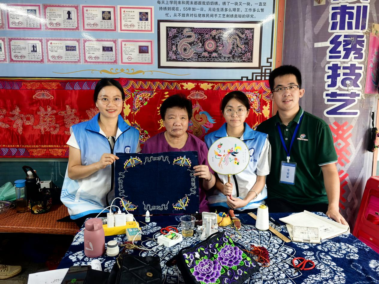 (调研组对广西仫佬族刺绣代表性传承人谢秀荣展开深度访谈)