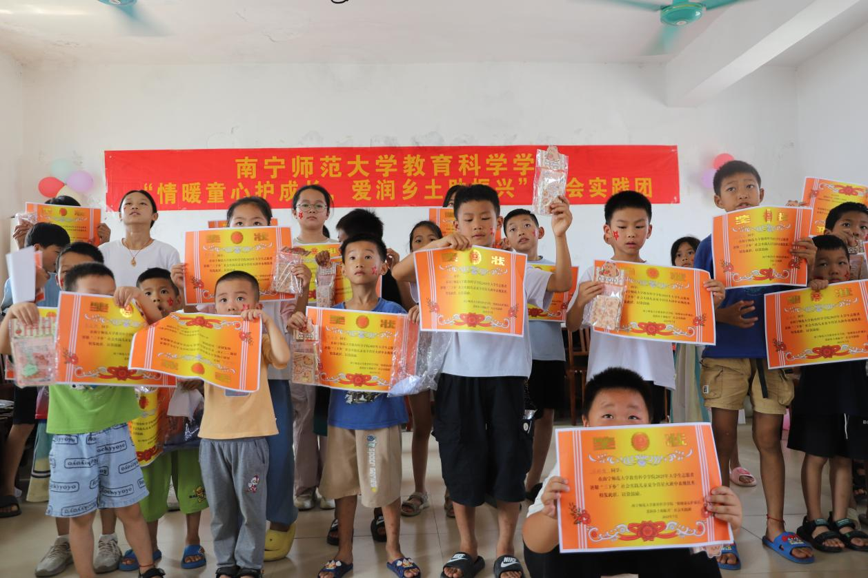 7月13日至18日,best365足球官网教育科学学院“情暖童心护成长,爱润乡土助振兴”社会实践团赴广西河池市罗城仫佬族自治县龙岸镇天宝村,用一周时间为当地孩子开展暑期夏令营活动,走访周边村落调研当地学生心理健康状况。实践团成员们将知识的种子播撒在田间地头、把调研的足迹印刻在乡土肌理,在天宝村书写了一个个充满活力的青春篇章。