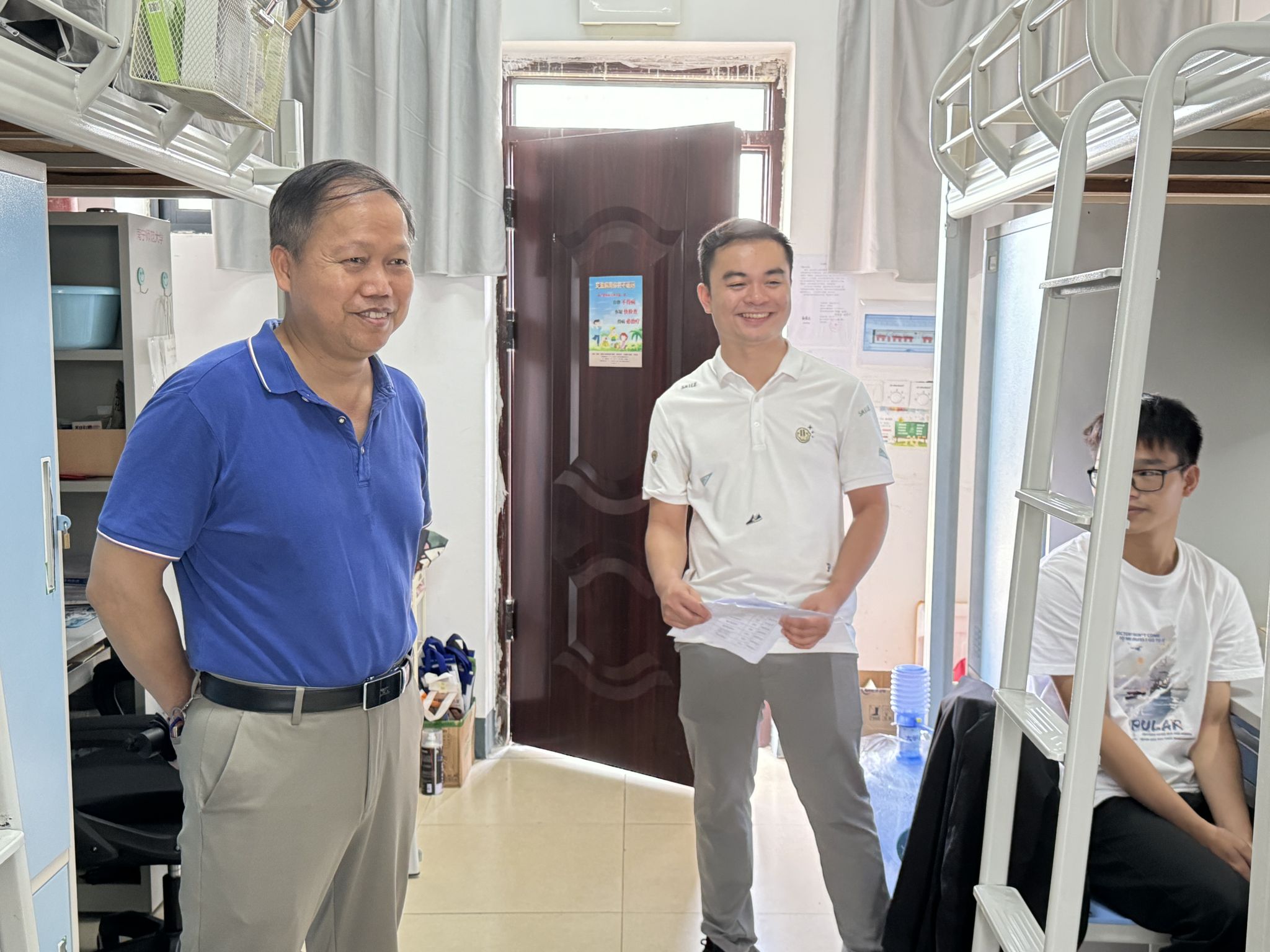 陈宗武书记细致询问了同学们的暑期安排、社会实践等情况,并叮嘱留校同学合理规划时间,充分利用校园资源,遵守宿舍管理规定,留校期间如遇到问题要及时向老师沟通反馈;对于计划返家的同学,提醒大家提前做好行程规划,及时向班主任报备行程轨迹及往返时间,返乡途中注意交通安全,人身安全、财产安全,确保平安度假。此外,老师们还对宿舍公共区域及学生寝室进行了全面细致的安全排查,叮嘱同学们务必重视用电安全,杜绝安全隐患。