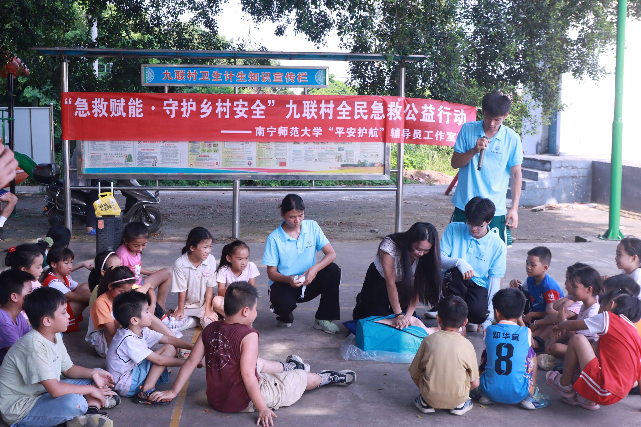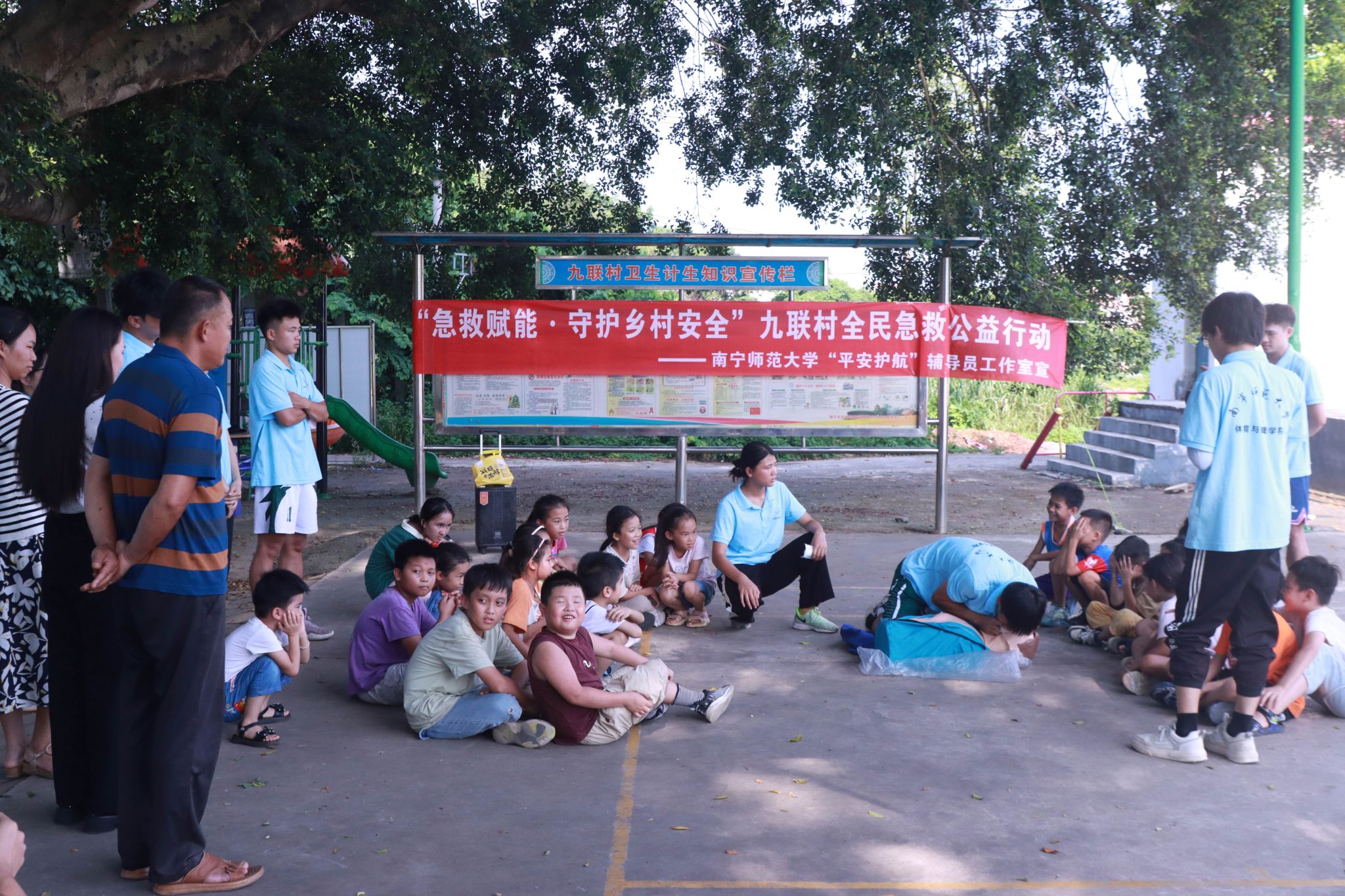 为普及防汛防溺急救知识,增强乡村小学生防灾避险能力,筑牢校园安全防线,7月17日,best365足球官网“平安护航”辅导员工作室联合体育与健康学院“体健赋能·壮韵九联”暑期实践团在南宁市武鸣区九联村组织开展“急救赋能·守护乡村安全”九联村全民急救公益行动。急救培训由实践团队员讲解演示,九联村村委会干部、九联村部分家长及小学生参加。
