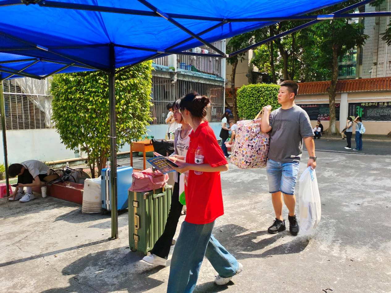 自迎新筹备工作启动以来,学院便围绕“让新生安心、让家长放心”的目标,对报到流程进行了全方位、精细化统筹规划。从迎新点位的科学布局、物资筹备,到工作人员与志愿者的系统培训,每一项工作都力求周全。迎新现场,身着统一服装的工作人员与志愿者们成为了最亮眼的“风景线”——他们主动上前接过新生手中的行李,热情指引校园路线,手把手协助完成入学手续,面对新生与家长的疑问,更是不厌其烦地耐心解答。汗水浸湿了衣衫,却挡不住他们真诚的笑容;重复的话语,却满含着对新生的欢迎。他们用实际行动诠释了职师院学子“乐于奉献、积极向上”的精神风貌,也让新生在踏入校园的第一刻,就感受到了来自学院大家庭的温暖与关怀。