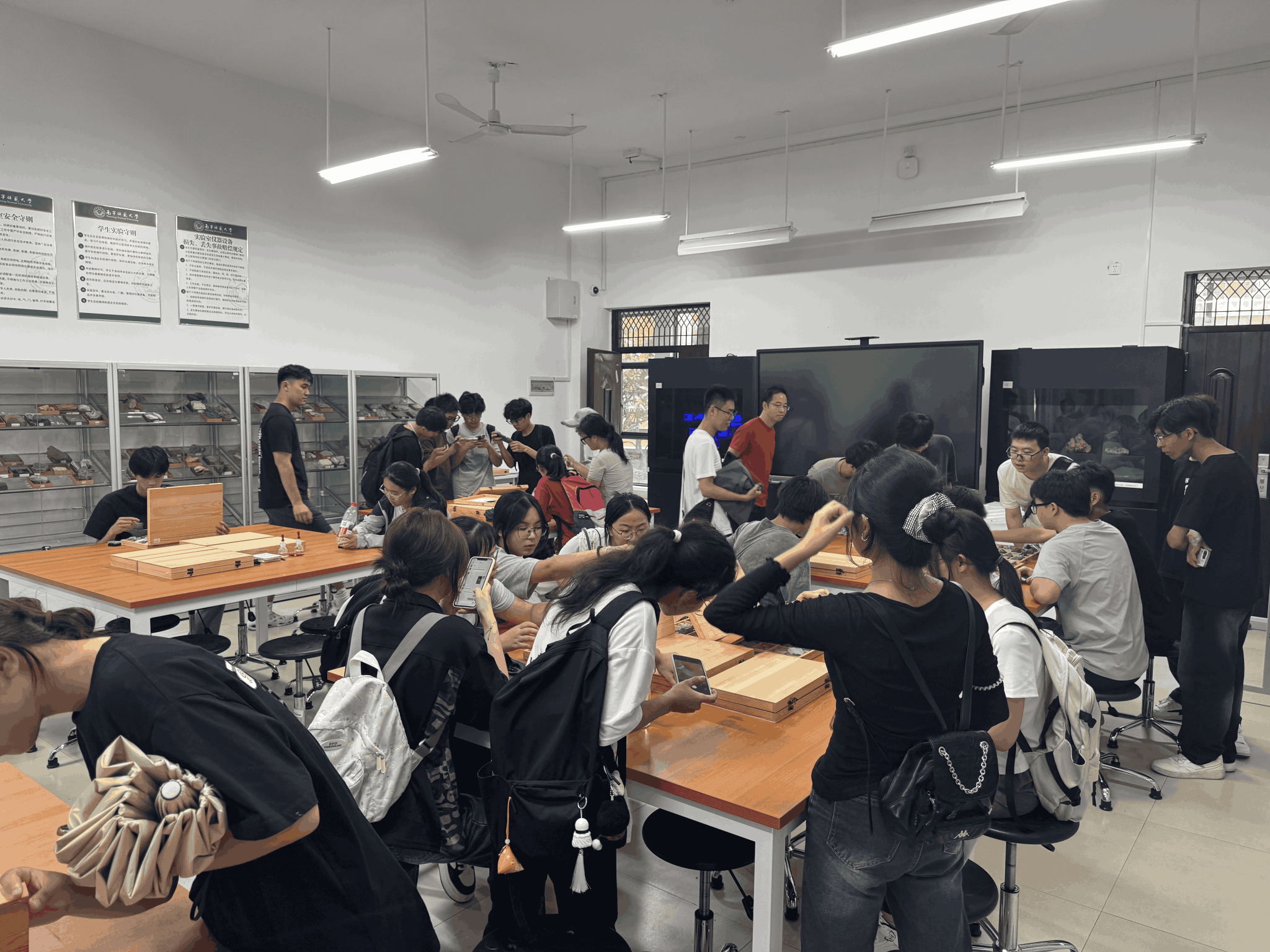 会后,各班级有序组织新生参观学院地理研学路线。在讲解员的引导下,同学们先后走访了自然资源科普基地、岩矿地质实验室、地理学成果展示馆等教学科研场所,进一步了解了学院的发展历程与建设成就,体验了一场生动而深刻的地学启蒙之旅。