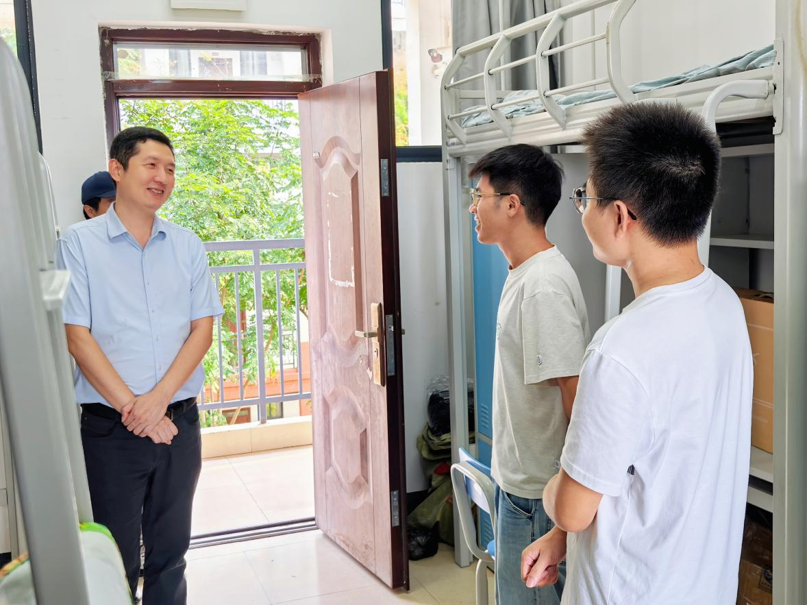 9月6日,学院党委书记严志强带领党政班子成员、班主任及全体辅导员,深入2025级新生学生宿舍走访活动,向新生传递学院的关怀与温暖。
