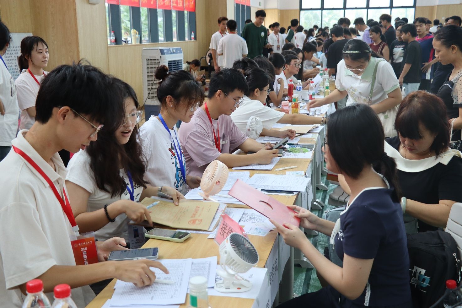 学院领导们来到迎新现场,一同慰问一线工作人员,并指导工作开展。迎新现场,团委、学生会的工作人员与新生助班分工明确、无缝衔接。工作人员们守候在各校门,主动帮新生搬运行李,耐心解答各类问题,确保新生顺利抵达报到点。助班们则高效办理入学手续,核对证件、发放物资、指导填写材料,为新生提供专业而温暖的一站式服务。大家通力协作,迎新工作秩序井然、温馨高效。期间,学校领导亲临学院报到区域检查指导,对学院周密的工作安排和师生饱满的热情给予充分肯定。校领导的关怀与鼓励为迎新工作注入了温暖与力量,让整个迎新现场氛围更加热烈、有序。