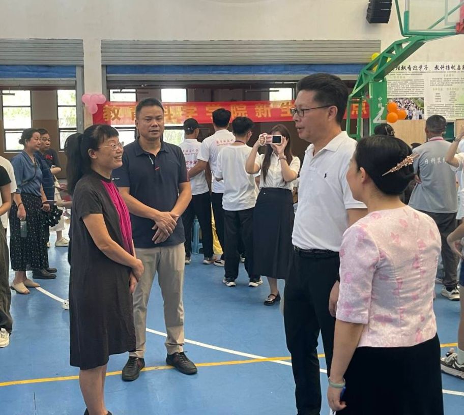 新生报到期间,学院党委书记韦海鸣、院长何玲玲、党委副书记谢统义、副院长丘兆逸,全体辅导员以及班主任来到学院大本营指导学生干部做好新生接待工作,学生干部从容有序进行双证核验、发放资料等工作。当天下午,学院领导和班主任、辅导员深入新生宿舍,与新同学及家长亲切交流,送上学校的关怀与问候。此外,为解决新生初到学校面临的各种问题,学院开设了新生报到直播答疑通道,全天不间断直播,吸引观众2057人次观看,评论量243,点赞达2.3万,及时有效地解决了新生困惑。晚上,班主任召开新生见面会,重点强调了预防电信诈骗等内容,为新生开学上好第一堂思政课。