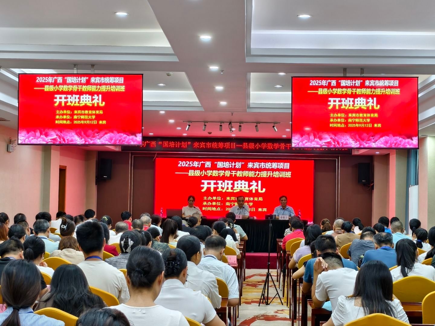 9月12日,2025年广西“国培计划”来宾市统筹项目——县级初中数学骨干教师能力提升培训班与县级小学数学骨干教师能力提升培训班的开班典礼,在来宾市同步举行。两项培训均由best365官网数学与统计学院承办,旨在提升来宾市县级初中、小学数学骨干教师的教学能力,为当地基础教育质量的提升注入新的活力。