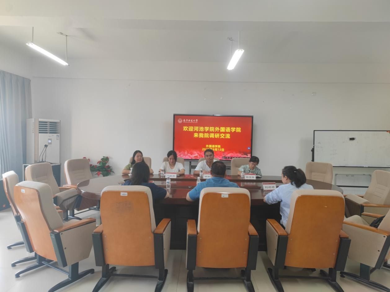 双方围绕英语专业建设、教师团队发展、教学改革等议题进行了深入交流和讨论。钟伟轩表示,此次交流学习收获颇丰,为河池学院外国语学院的相关工作提供了宝贵经验。