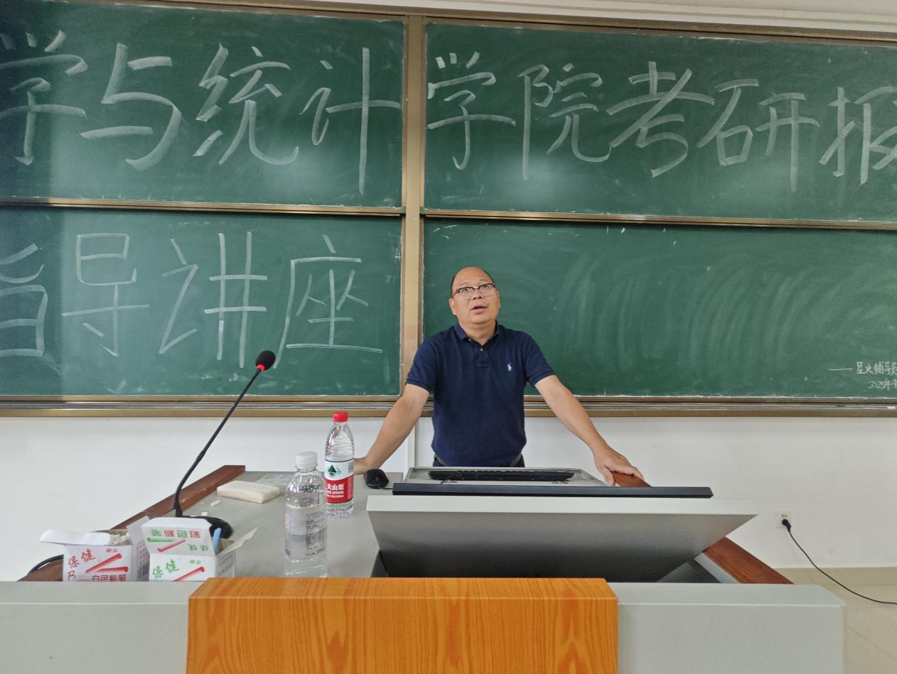 为帮助毕业生认清就业形势,开启吹响就业工作的号角,同时助力考研学生厘清备考方向,破解择校、科目选择、复习规划等核心困惑,9月24日,数学与统计学院在武鸣校区开展2026届毕业生就业动员大会暨考研指导讲座。本次会议分专业、分层次开展,2022级全体毕业生参加,学院院长黄在堂、副书记王卫彬、副院长韦扬江、副院长刘利斌、毕业班班主任、学院负责就业辅导员参与本次会议。