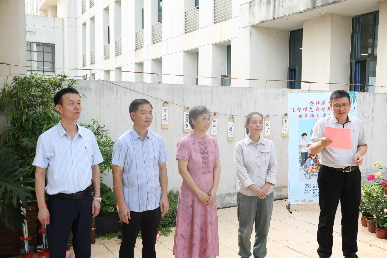 9月19日上午,文学院在文理综合楼4楼文学院百草园“静待花开”花卉培育项目启动仪式,并于理楼404会议室举行首次培育课程。学校纪委书记李美清、文学院党委书记石勇、副院长(主持行政工作)刘振平、党委副书记吴幼坚、副院长张淑云、院长助理石艺、特邀园艺师黄翠玲及文学院劳动教育任课老师与学生代表一同参与。