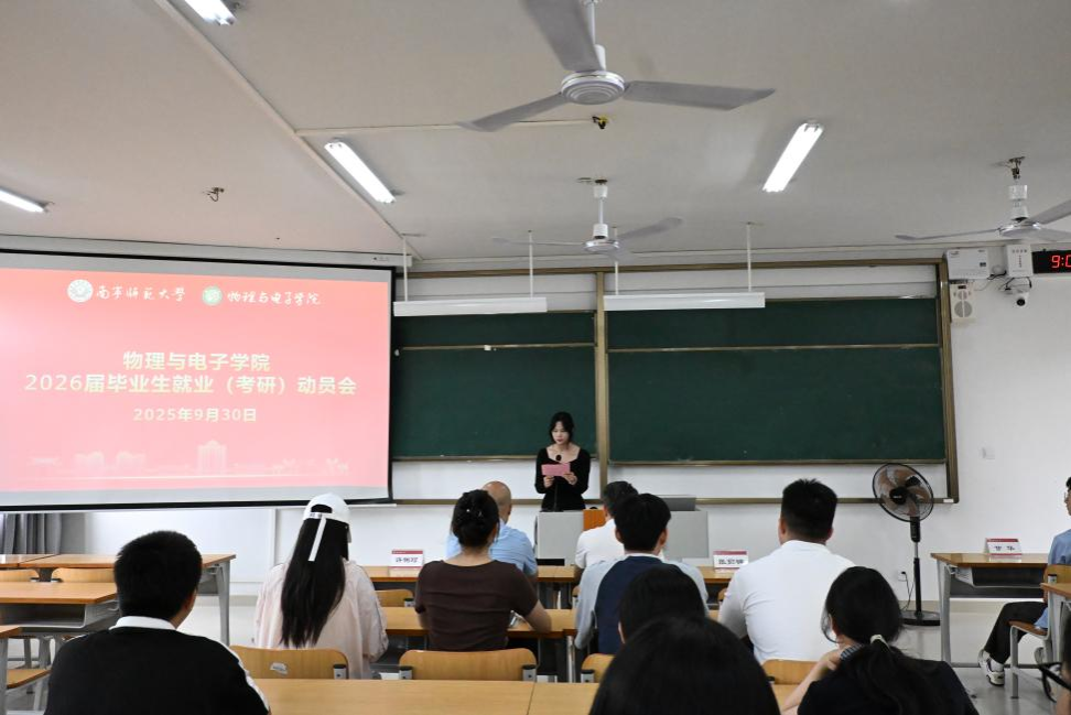 为助力毕业生明晰就业与考研方向,规划未来发展路径,9月30日上午,物理与电子学院于武鸣校区实验二号楼召开2026届毕业生就业(考研)动员会。学院党委副书记何聪、副院长李光明、团委书记许俐珂、辅导员张茹楠、研究生代表及大四同学参加。