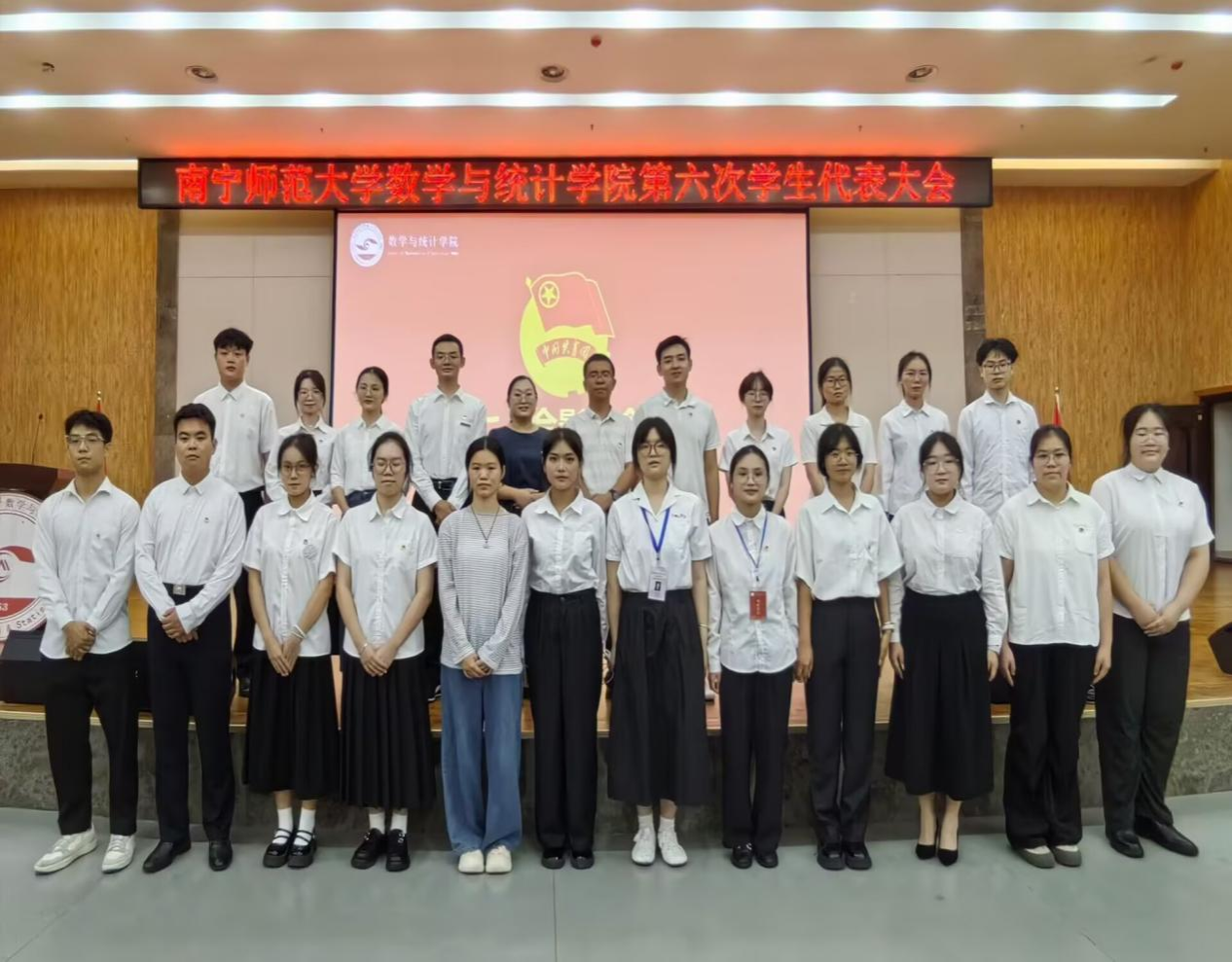 正式会议在庄严的国歌声中拉开序幕。学院团委书记梁卡霖致开幕词,她明确指出本次大会的重要意义,充分肯定青年学生在团学工作中发挥的模范带头作用,号召全体代表牢记使命担当,认真履行代表职责,共同推动大会顺利进行。校学生会代表致贺词,她高度认可数学与统计学院过去一年结合专业特色打造品牌活动的亮眼成效,赞扬学院青年学子在工作中展现的创新精神与奉献意识,同时预祝大会圆满成功。