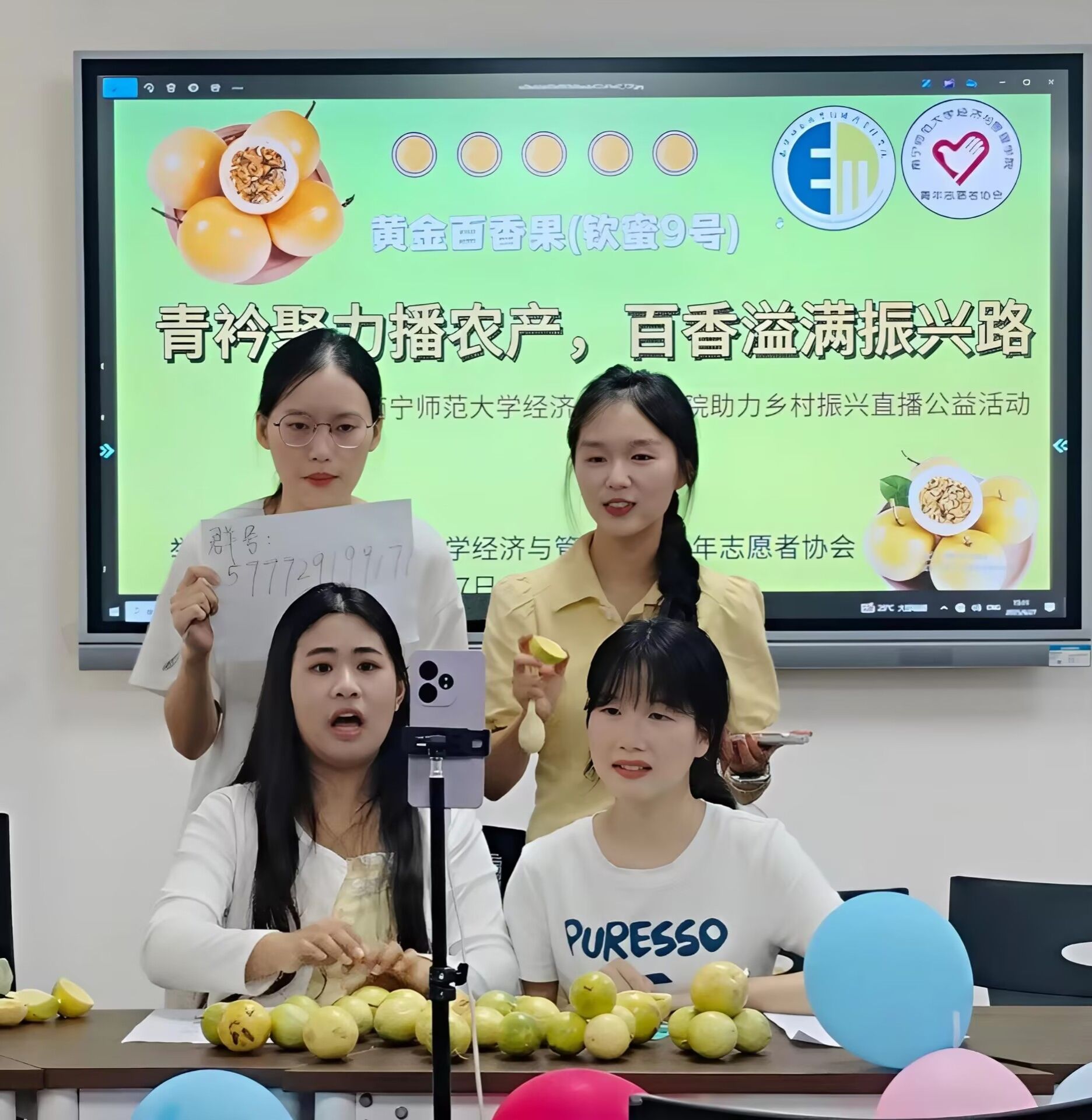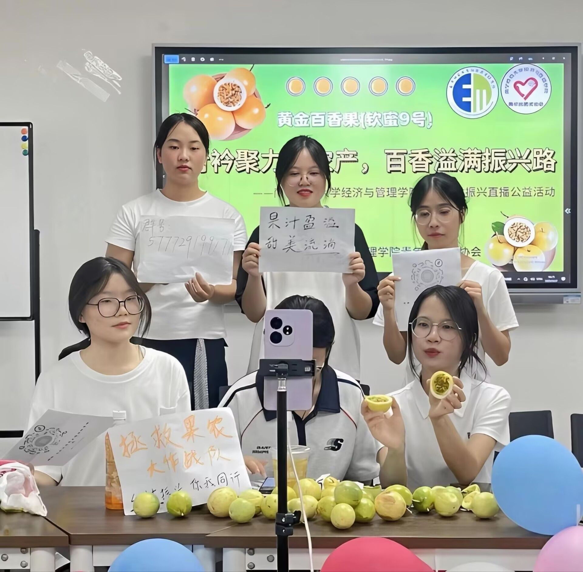 为积极响应国家乡村振兴战略,拓宽农产品销路,带动农户增收,best365足球官网经济与管理学院青年志愿者协会于2025年9月27日开展以“青衿聚力播农产,百香溢满振兴路”为主题的百香果直播助农大赛。