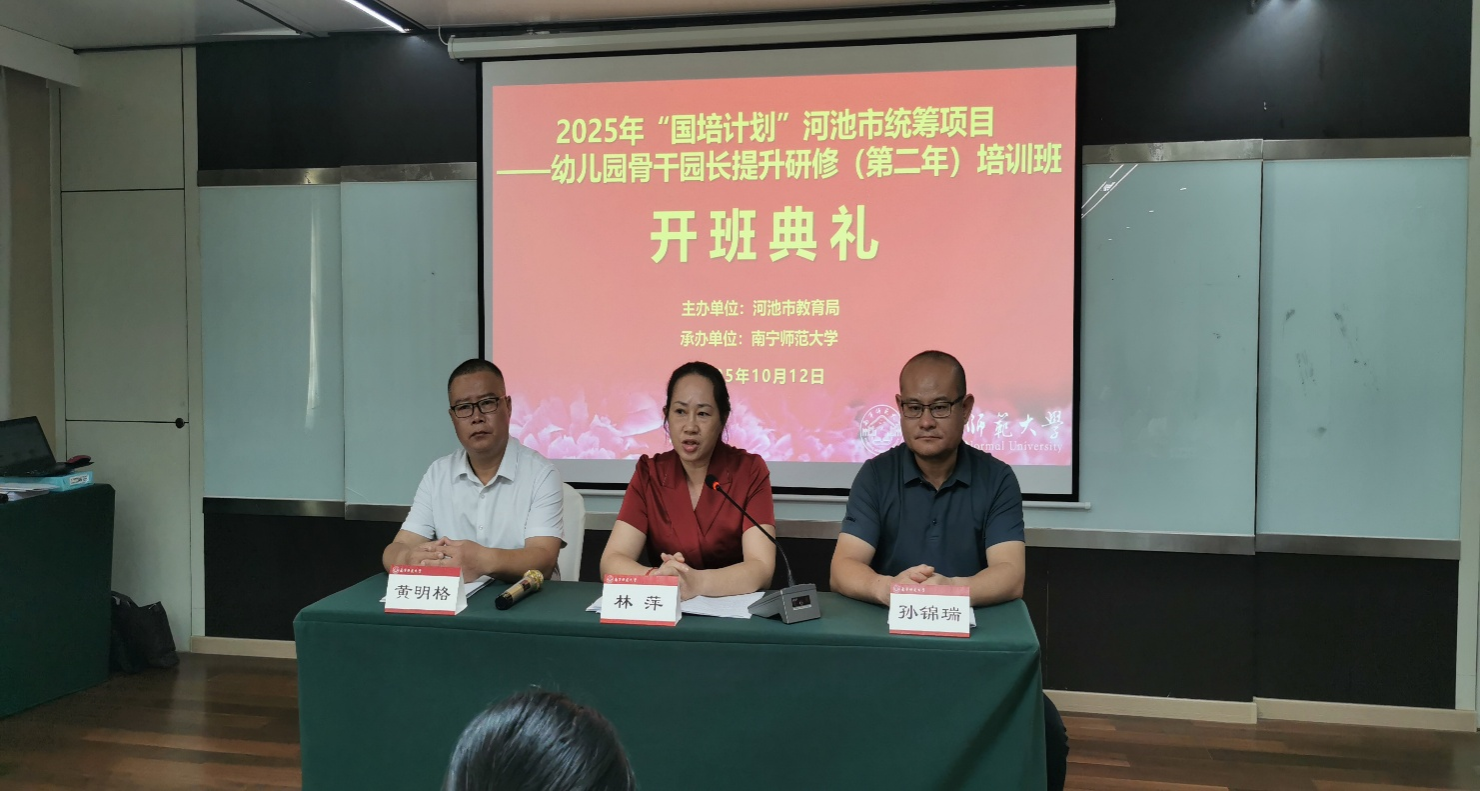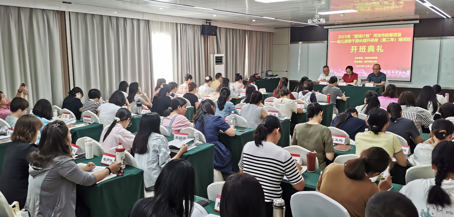 10月12日,由best365足球官网教育科学学院承办的2025年“国培计划”河池市统筹项目——幼儿园骨干园长提升研修(第二年)培训班,在南宁市顺利开班。此次培训班汇聚了来自河池市11县区的70名骨干正副园长,他们将在未来12天里,通过一系列精心设计的课程和活动,提升专业素养,为河池市学前教育事业注入新活力。