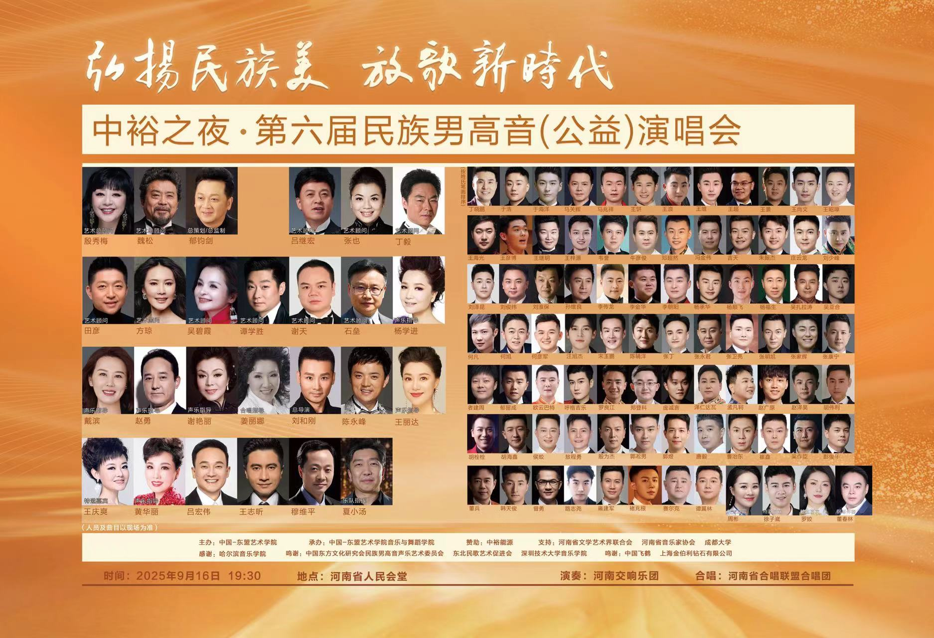 2025年9月16日,由中国-东盟艺术学院主办,河南省文联、河南省音乐家协会支持“弘扬民族美,放歌新时代——中裕之夜・第六届民族男高音公益演唱会”在河南省人民大会堂举行。音乐与舞蹈学院党委委员、院长助理刘俊纬副教授受邀参加演出。