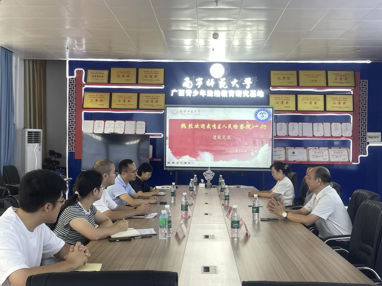 10月15日上午,武鸣区人民检察院一行到访法学与社会学院,参加“检校合作”交流座谈会。武鸣区人民检察院党组书记、检察长张仁,法学与社会学院主持行政工作的副院长吴少进、卢明威副院长、龚战梅教授、邓雅文老师及相关研究生代表参会,会议由卢明威主持。