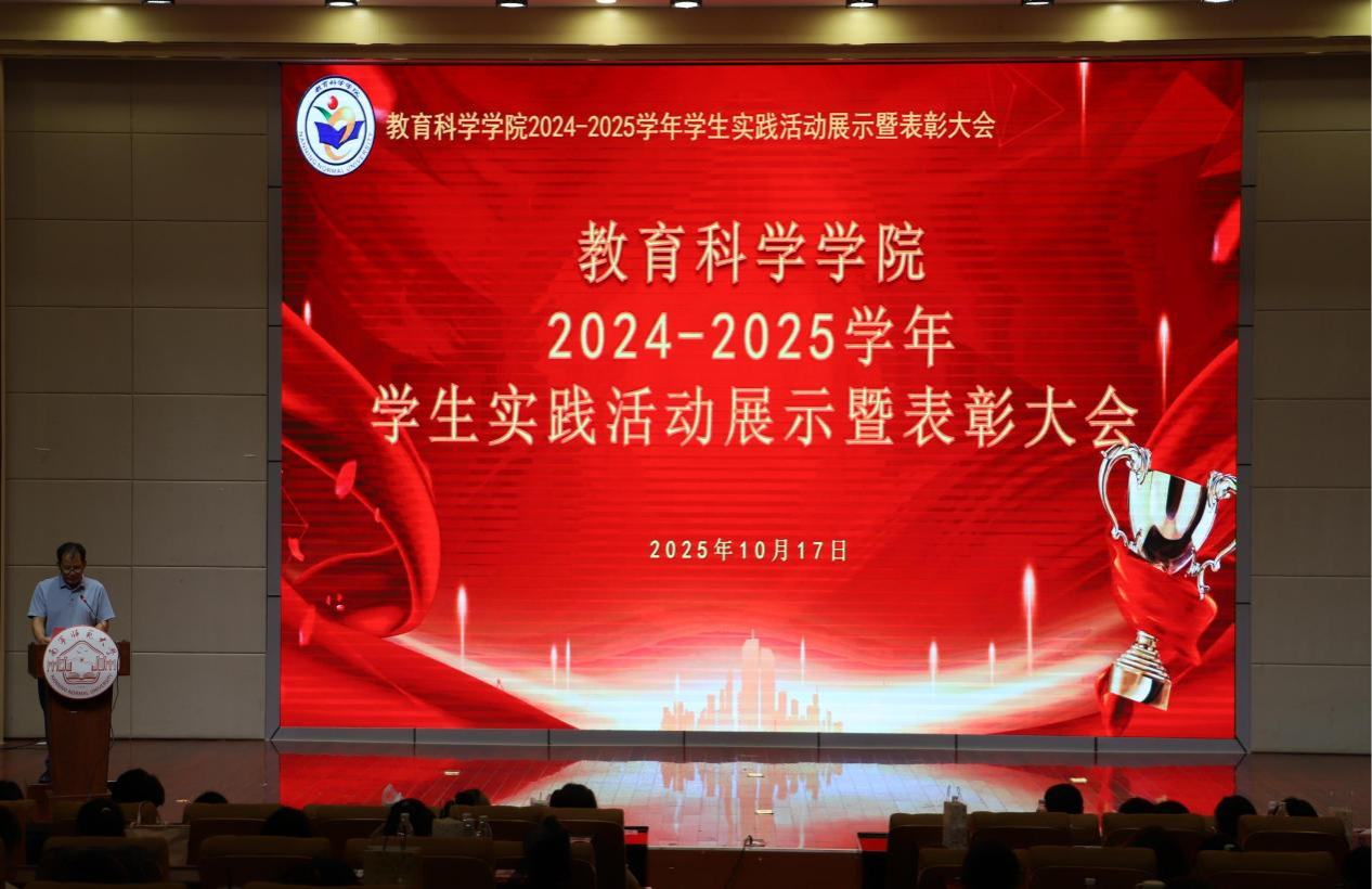 10月17日晚,教育科学学院在五合校区文综楼114教室举行了学院2024-2025学年学生实践活动展示暨表彰大会,党委书记余朝文、党委副书记谢珊、应用心理学系谢流芳老师、学工办全体老师及各班级学生代表参加此次大会。
