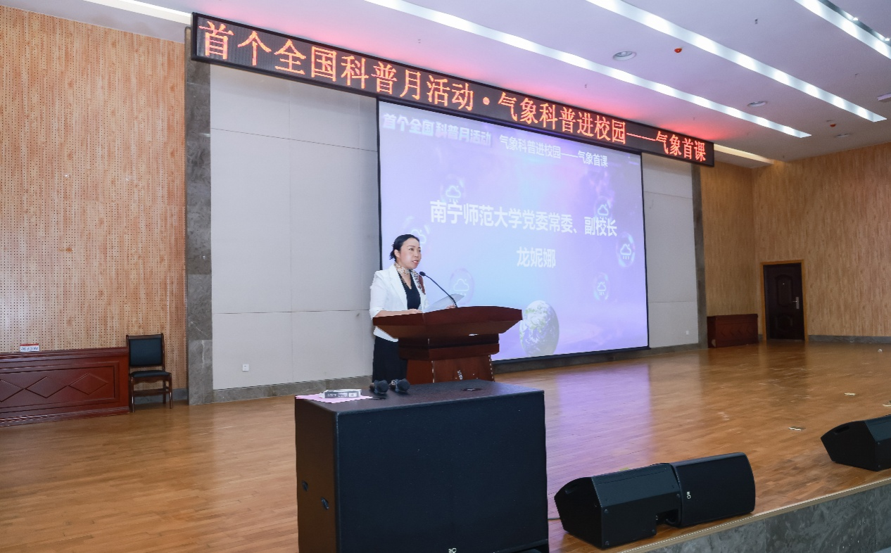 best365官网龙妮娜副校长出席活动并致辞。龙妮娜强调,“气象首课”活动不仅是科普课,更是一堂融合思政与专业启航的“金课”,引导新生关注气象科学与国家粮食安全、生态文明及防灾减灾等重要领域的联系,助力培养复合型气象人才。学校与广西壮族自治区气象局已签署合作协议,学校首批大气科学专业本科生已入学,希望双方共同推进人才培养,为广西高质量发展提供气象科技支撑。同时希望同学们在大学旅程中乘风破浪,收获知识、启迪思维,共同筑就气象事业新未来。