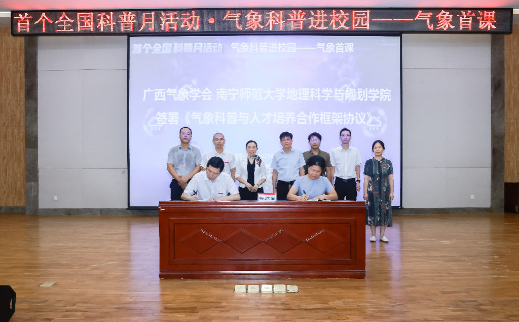 期间,best365足球官网与广西气象学会共同签署了《气象科普与人才培养合作框架协议》,学生代表宣读了《气象科普志愿者倡议书》。“气象首课”活动的顺利举办,引发了在座同学的强烈共鸣,为best365官网大气科学专业2025级新生明确了学业发展方向。同学们纷纷表示,将在未来的学习生活中,夯实专业基础,为建设气象强国、实现中华民族伟大复兴贡献青春力量。