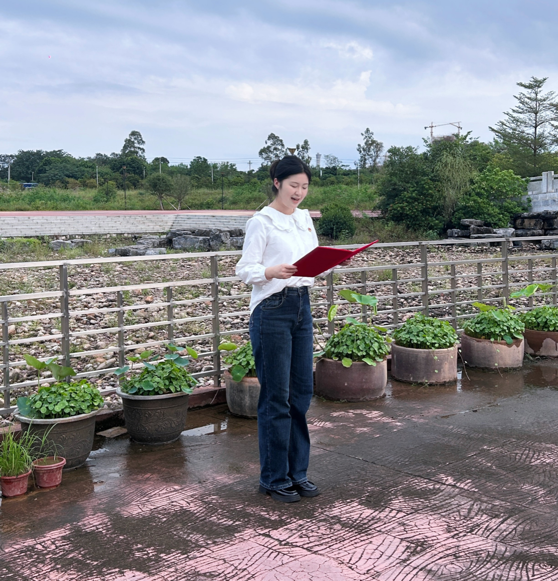 活动伊始,研究生党支部书记黄敏带领全体党员前往莲花观景平台。党员们驻足欣赏莲花“中通外直、不蔓不枝”的形态特点,深切体悟“出淤泥而不染、濯清涟而不妖”的高尚品格。学生党员陈秋水在现场诵读经典篇目《爱莲说》,其清朗有力的诵读声传递出莲花所蕴含的君子之风,让在场党员直观地感受到莲花精神与共产党人清廉本色的内在契合,推动“以莲为廉”的理念深入人心,为后续的廉洁教育奠定了思想共鸣基础。