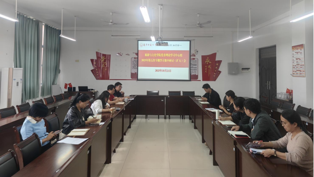 10月21日下午,旅游与文化学院党委理论学习中心组2025年第五次专题学习集中研讨(扩大)会在武鸣校区地信楼B201会议室举行。学院党委委员、纪委委员、各党支部书记参加学习,院党委书记贾坷主持会议。