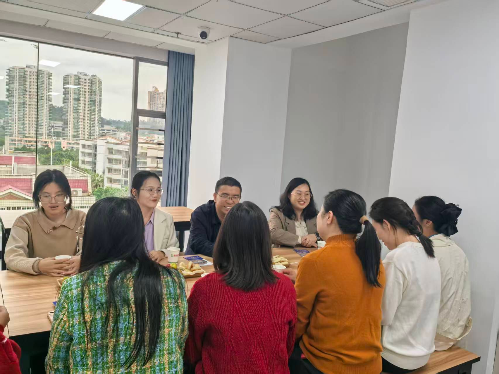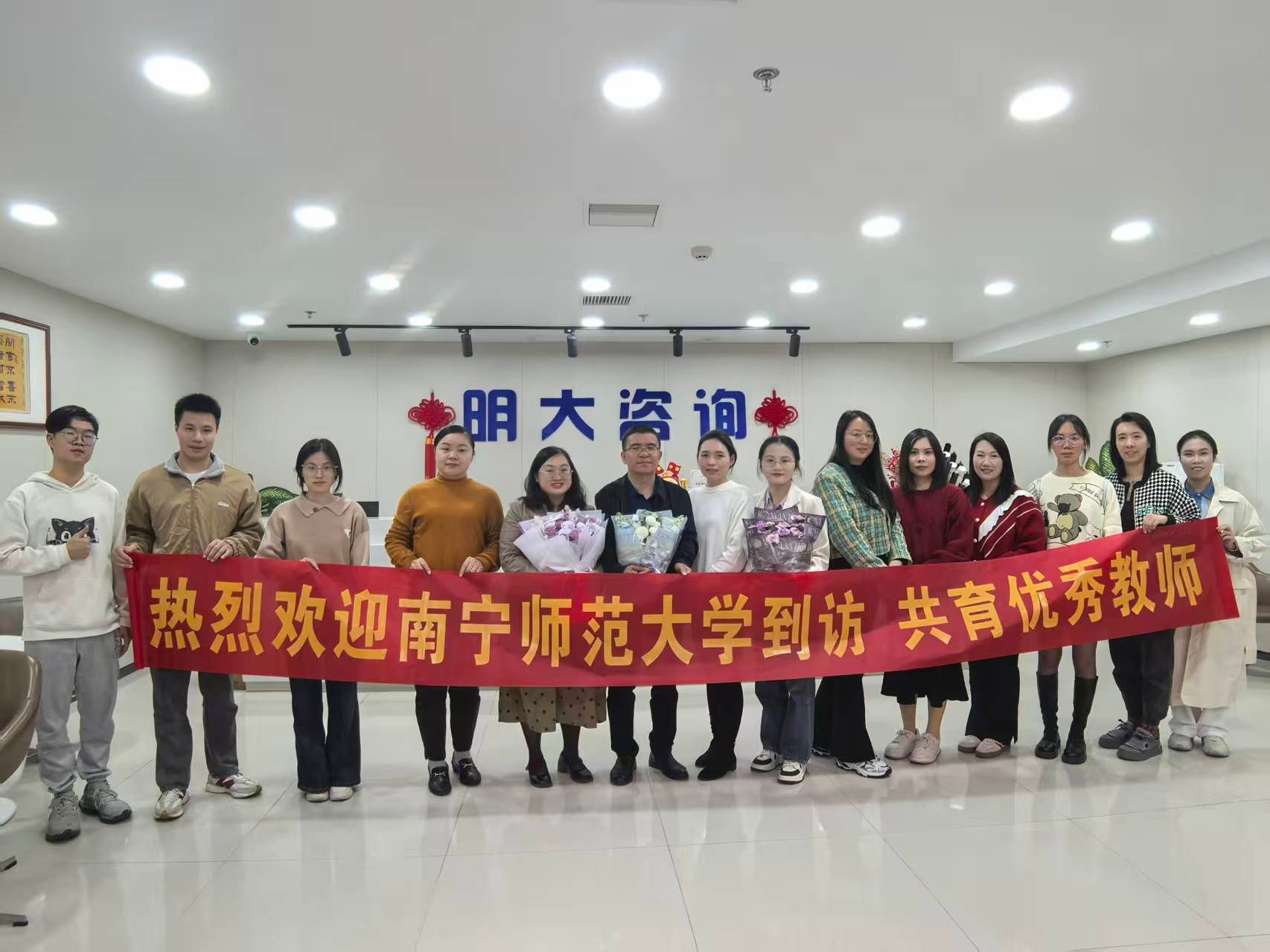 为精准对接企业用人需求,助力毕业生高质量就业,10月23日下午,数学与统计学院党委副书记王卫彬、团委书记梁卡霖、辅导员滕容梅带领毕业班学生代表,前往南宁明大教育开展访企拓岗活动。明大教育人力总监陆庆熊及南宁各校区教学主管热情接待,双方围绕校企合作、毕业生就业等议题展开深入交流。