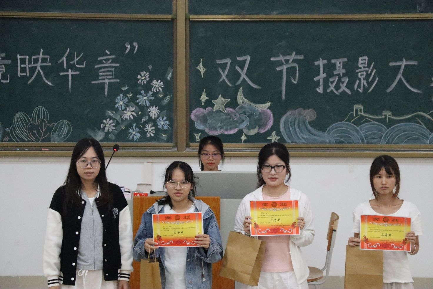 团委书记张慧荣为本次大赛作总结发言。她肯定了工作人员细致周密的组织筹备,表扬了部分选手在主题表达与摄影技术上的突出表现。同时,她也指出了部分作品在构图逻辑与主题深度上仍有提升空间,鼓励同学们在今后的创作中继续打磨、不断进步。经评委组依据规则进行综合评定,最终确定获奖名单如下:一等奖获得者劳美玲;二等奖获得者刘建琼及“摸鱼组”;三等奖获得者蓝晓乐、陈广炎及“熊出没队”。