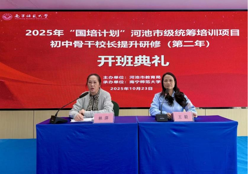 10月23日下午,开班典礼在南宁如期举行,培训班主任王毅老师与河池市教育局教师培训中心林萍主任共同出席。王毅老师简要介绍best365足球官网办学基础,希望学员明确目标、学以致用。林萍主任对本次培训班的筹备与组织给予高度肯定,希望学员珍惜机会、发挥骨干作用。随后,周代许老师以“乡村教育振兴背景下校长专业发展与学校制度建设”开启首场专题讲座,结合案例解析实践路径。