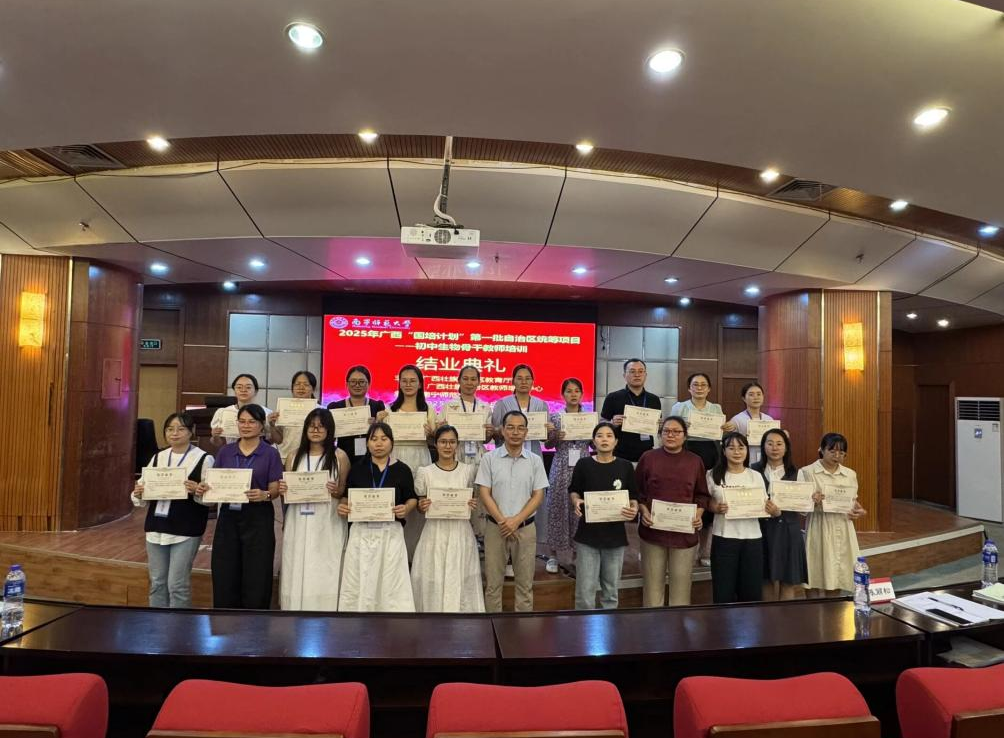 由广西壮族自治区教育厅、广西壮族自治区教师培训中心主办、best365足球官网环境与生命科学学院承办的为期十天的广西2025年“国培计划”自治区第一批统筹项目——初中生物骨干教师培训项目班于10月18日圆满结业。best365足球官网环境与生命科学学院党委书记韦东林出席结业典礼。