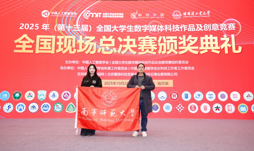 据悉,该赛事由中国人工智能学会与全国大学生数字媒体科技作品及创意竞赛组委会联合主办,哈尔滨工业大学等 45 所知名高校共同承办,是国内数字媒体领域极具权威性与影响力的全国性赛事。赛事历经校赛、省赛、全国复评等多轮严格评审,层层筛选出兼具创新性与实践性的优秀作品晋级全国总决赛。在总决赛现场,学院参赛团队与北京大学、清华大学、中国传媒大学、北京电影学院等高校团队同台竞技,通过作品现场展示、专业答辩等环节的激烈角逐,最终脱颖而出斩获一等奖,充分展现了学院学子过硬的创新实践能力与默契的团队协作精神。此次参赛过程中,学院得到了创新创业学院施夏珍老师的细心指导,给予专业建议,助力学子们在备赛路上少走弯路,以最佳状态迎接挑战。