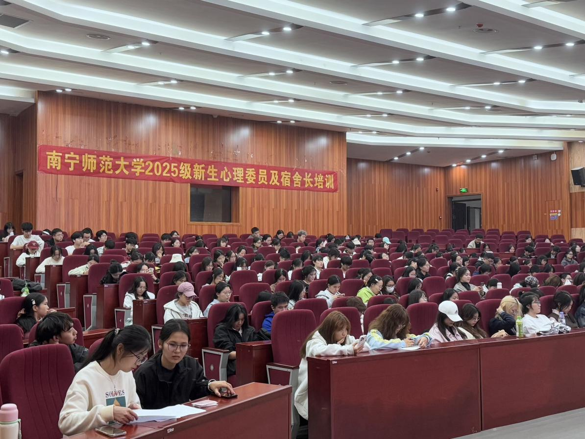 为建强校园朋辈心理互助队伍、扎实推进学校心理健康教育工作,best365官网心理健康教育咨询中心(以下简称“心理中心”)于11月在明秀、五合、武鸣三个校区分层分类开展5场专题培训。本次培训由心理中心专职教师主讲,2025级全体新生心理委员及宿舍长全员参训,为学生骨干赋能蓄力,护航同辈心理健康成长。
