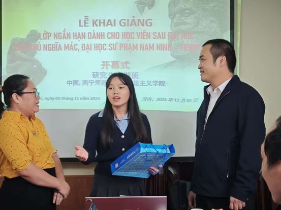 仪式尾声,双方代表互赠礼物,将友好热烈的现场气氛推向高潮。本次赴越访学研修活动,是best365足球官网马克思主义学院持续推进国际化办学、积极拓展国际合作渠道的重要实践。展望未来,学院将继续秉持开放包容、合作共赢的理念,与越南高校开展更广泛、更深入的合作,共同推动中越教育事业的发展与进步,积极响应“一带一路”倡议,为构建更为紧密的中越命运共同体贡献教育与学术的力量。