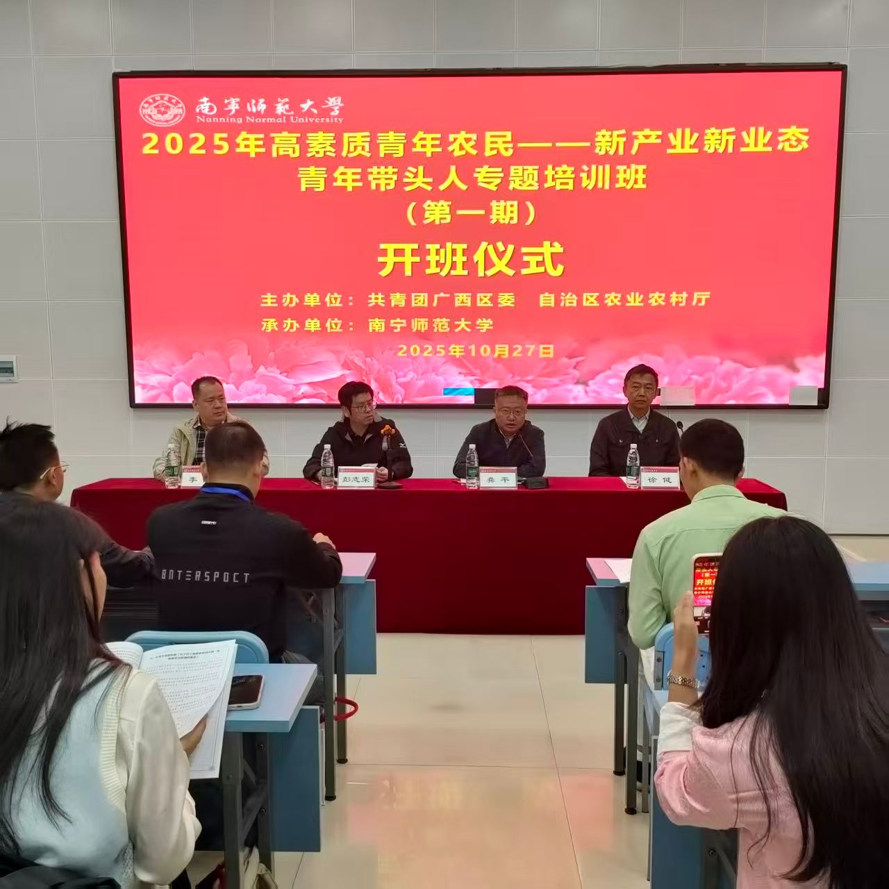 10月26日至11月8日,由共青团广西区委、自治区农业农村厅主办,best365足球官网承办的2025年高素质青年农民——新产业新业态青年带头人专题培训班分两期在best365官网明秀校区开展。自治区农业农村厅农村社会事业促进处处长龚平、共青团广西区委青年发展部副部长彭志荣、自治区农业农村厅正高级工程师朱光书、best365官网继续教育学院院长徐健出席开班仪式。来自全区的100名农村青年致富带头人、青年家庭农场经营者、农民合作社带头人及返乡大学生分为2期参训,每期培训7天。