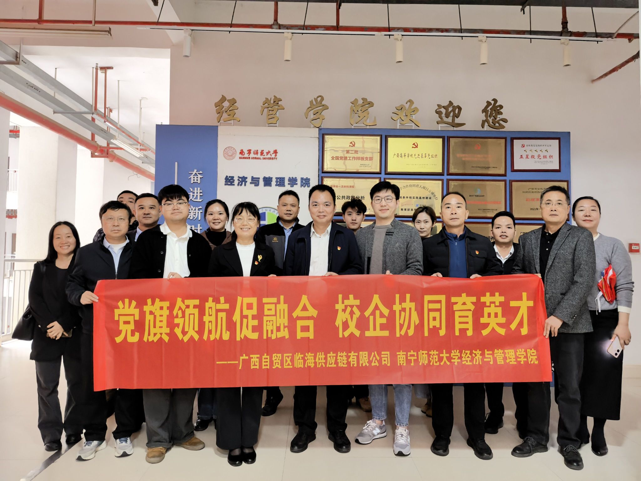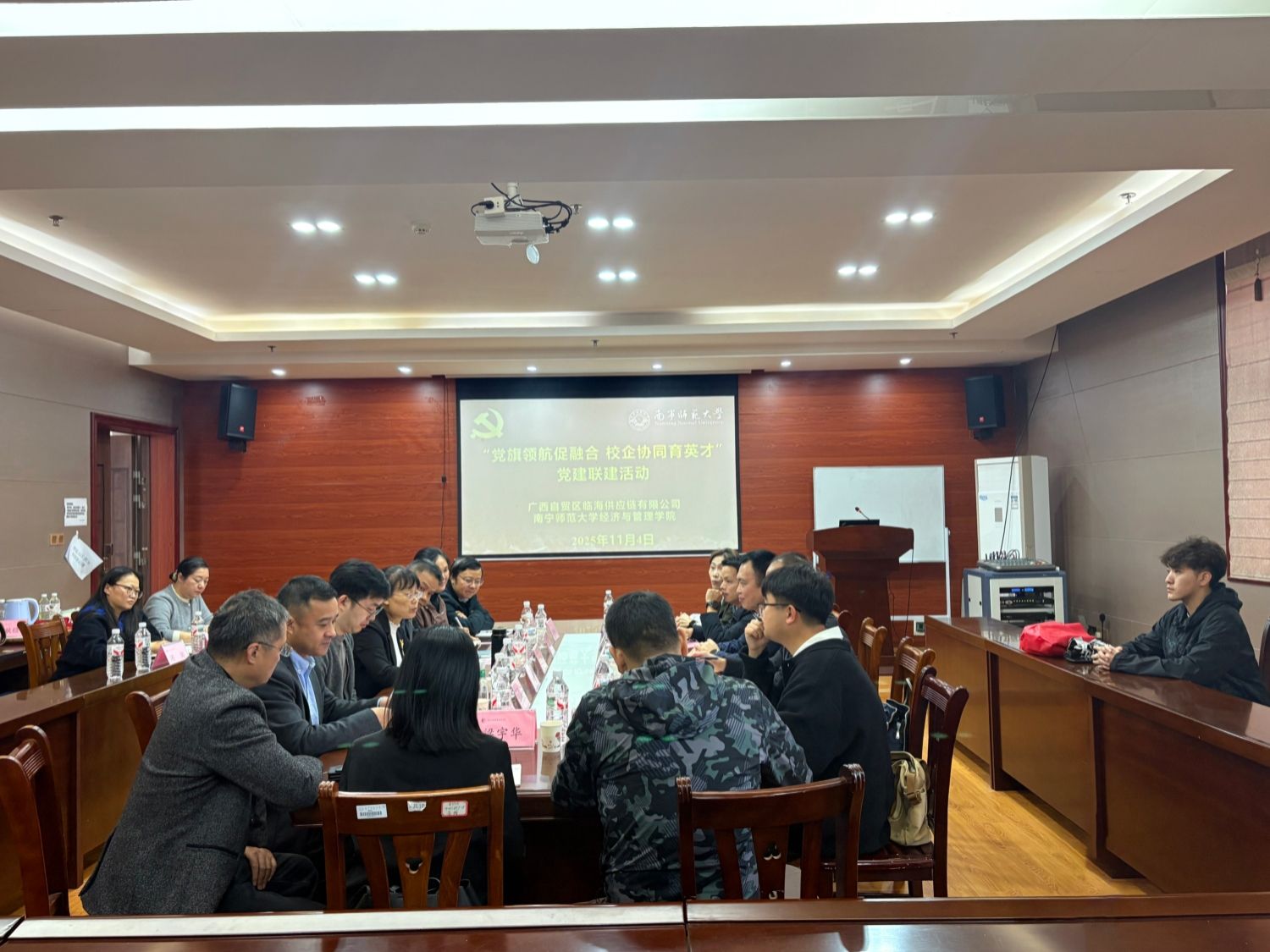 为深化校企合作,推动党建与业务深度融合。2025年11月5日,广西自贸区临海供应链有限公司(临海供应链联合党支部)与best365足球官网经济与管理学院在五合校区文理综合楼联合开展“党旗领航促融合 校企协同育英才”党建联建系列活动。活动聚焦资源共享、人才培养、科研创新等领域,通过党建联建平台,探索校企协同发展新路径。