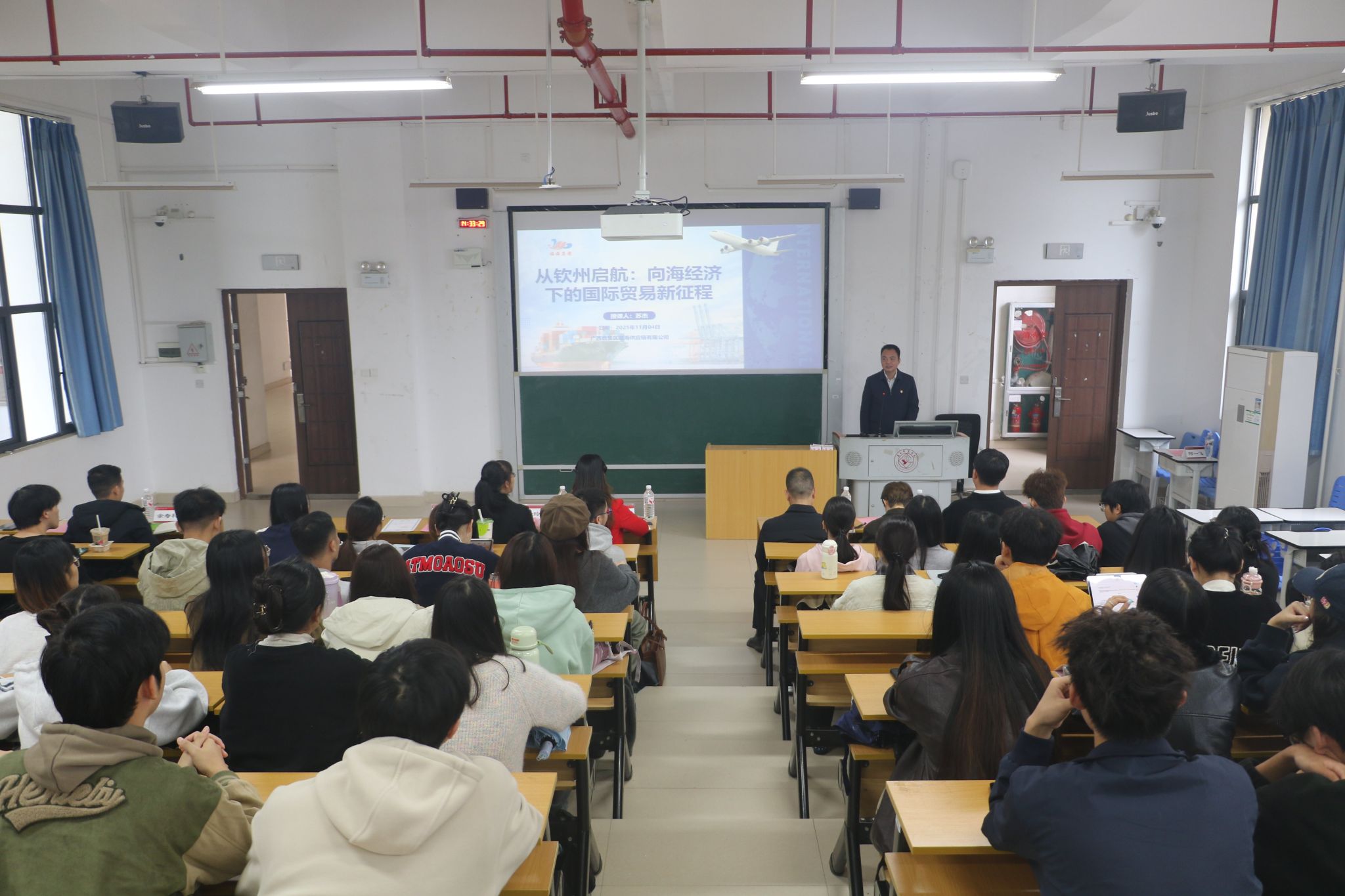 作为活动的重要环节,临海供应链联合党支部书记、公司董事长兼总经理苏杰为经济与管理学院师生作了题为《从钦州起航:向海经济下的国际贸易新征程》的专题讲座。苏杰董事长结合企业实际案例,分析了钦州在向海经济中的战略定位,探讨了国际贸易新趋势下的机遇与挑战。讲座内容深入浅出,激发了师生对国际贸易领域的兴趣,为校企合作提供了理论支撑。