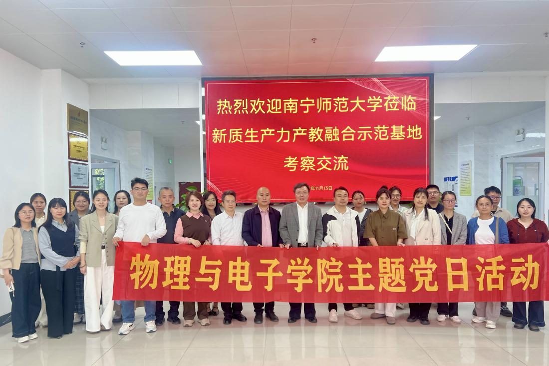 为深化校企党建协同共建,拓宽人才培养与就业合作渠道,切实将党建优势转化为育人实效与发展动能。11 月 13 日,物理与电子学院第一教工党支部书记徐艳华教授组织教工第一、二党支部党员分别赴广西宁动新能源科技有限公司和桂林理工大学南宁产业研究院开展“校企协同・双向赋能”主题党日活动,搭建校企互动的交流桥梁。
