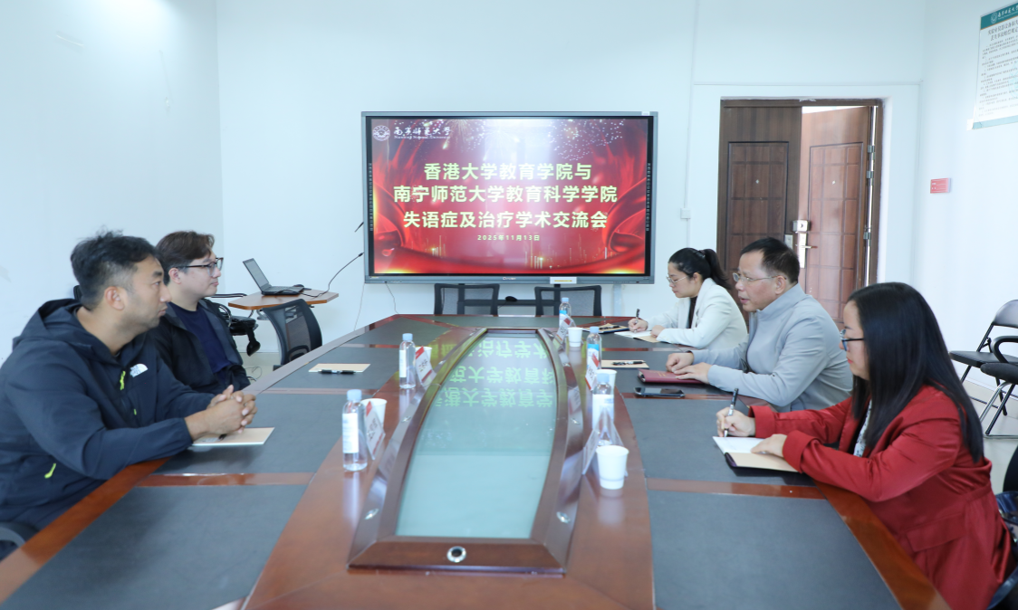 11月13日,香港大学教育学院江柏轩博士、副教授、教育学院失语症科研及治疗实验室主任及其博士生王国辉到访best365足球官网教育科学学院,围绕失语症研究、言语治疗发展等核心议题开展学术交流。best365足球官网教育科学学院党委余朝文书记及特殊教育系唐建荣、许玉巧老师参加会议,双方就学科建设、人才培养与合作路径展开深入研讨。