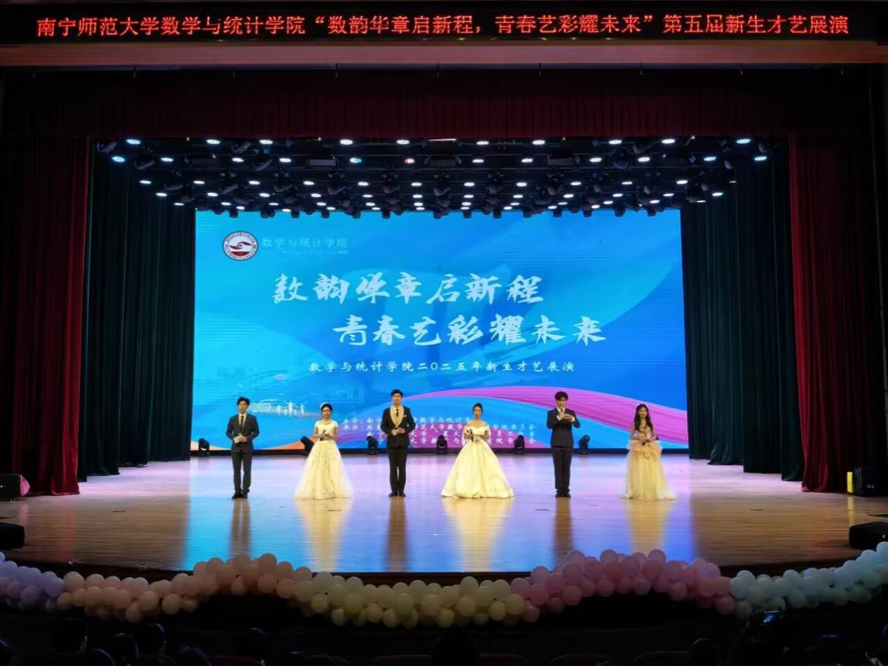 为厚植学院文化底蕴,彰显青春风貌,11月16日,数学与统计学院于武鸣校区音舞楼千人演播厅顺利举办“数韵华章启新程,青春艺彩耀未来”2025级新生才艺表演。学院领导班子、全体辅导员、教师代表和2025级同学们共同参与此次活动。