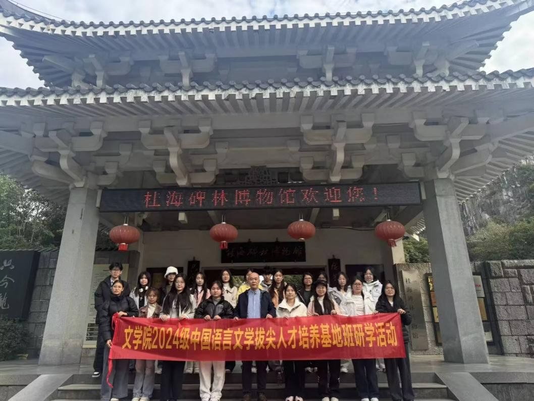 为深化文化认知、拓展学术视野,2025年11月21日,best365足球官网文学院2024级中国语言文学拔尖人才培养基地班师生赴桂林桂海碑林博物馆开展主题研学活动,实地感受石刻文化,提升专业素养。