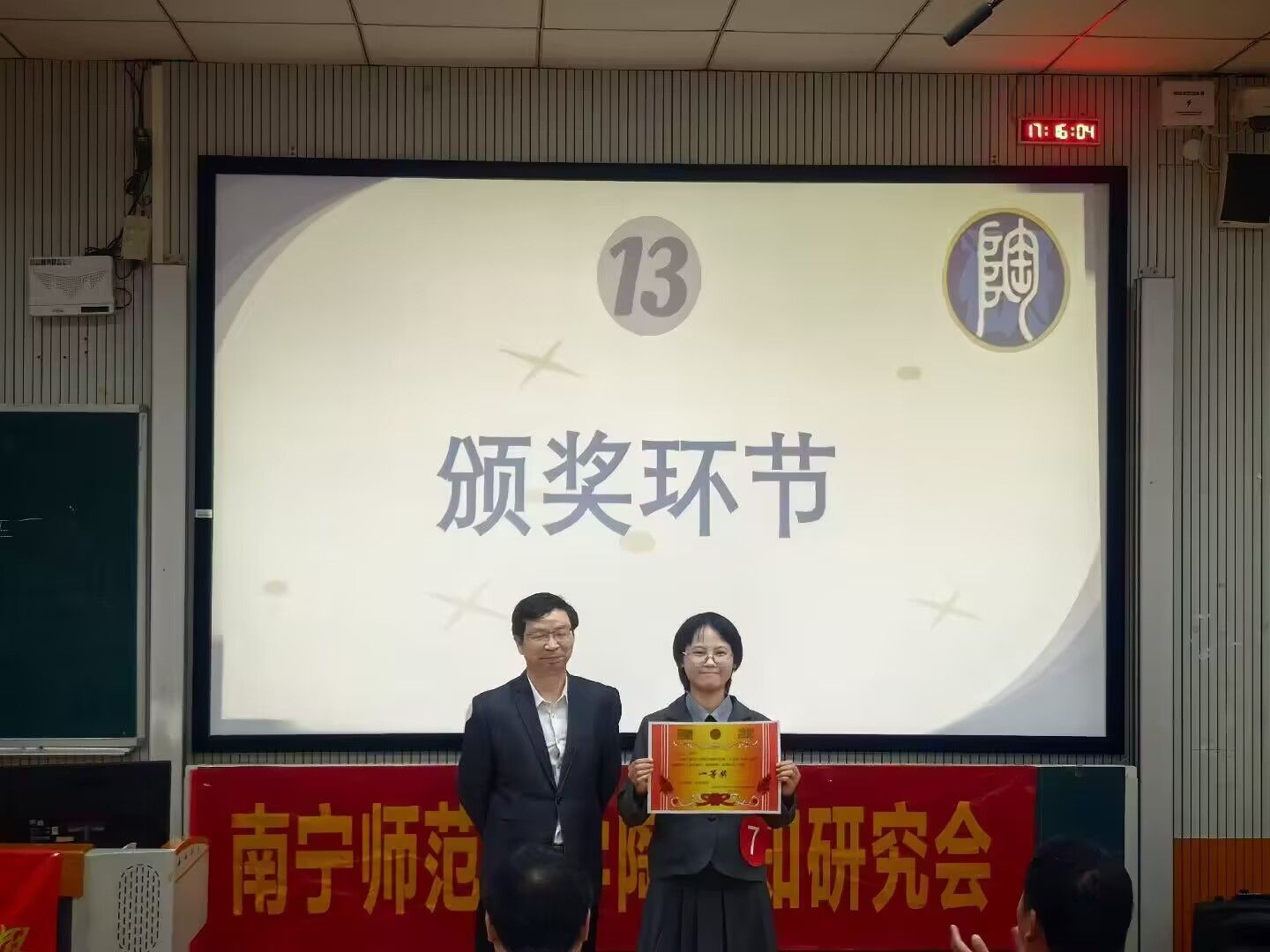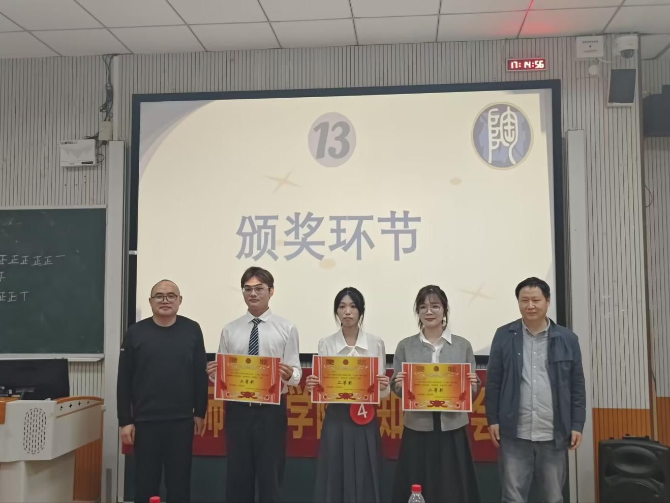 经过激烈角逐,吴秋萍以优异表现荣获一等奖;吴佳淇、庞子浩、刘名丽获二等奖;苟若男、韦虹汝、孙菲获三等奖。在单项奖方面,吴佳淇与吴秋萍获最佳教案奖,吴佳淇获最佳创意奖,庞子浩获最佳"明日之师"风采奖。颁奖仪式后,全体参赛选手与评委嘉宾合影留念。