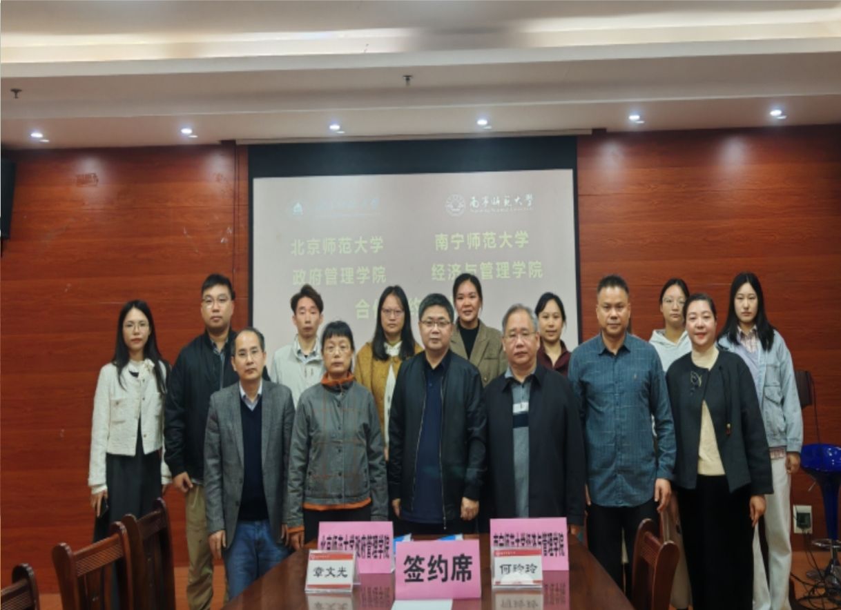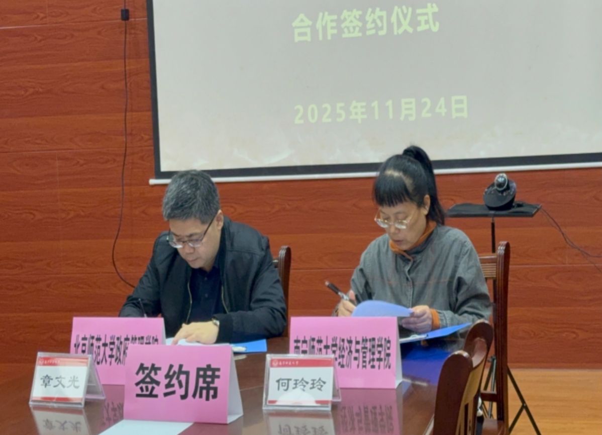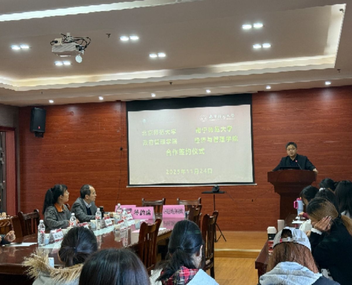 2025年11月24日,北京师范大学政府管理学院与best365足球官网经济与管理学院合作签约仪式在best365足球官网五合校区理楼515会议室举行。仪式由best365足球官网经济与管理学院党委书记韦海鸣教授主持,北京师范大学政府管理学院院长章文光教授、best365足球官网经济与管理学院院长何玲玲教授及学院领导班子成员、师生代表共同出席签约仪式。