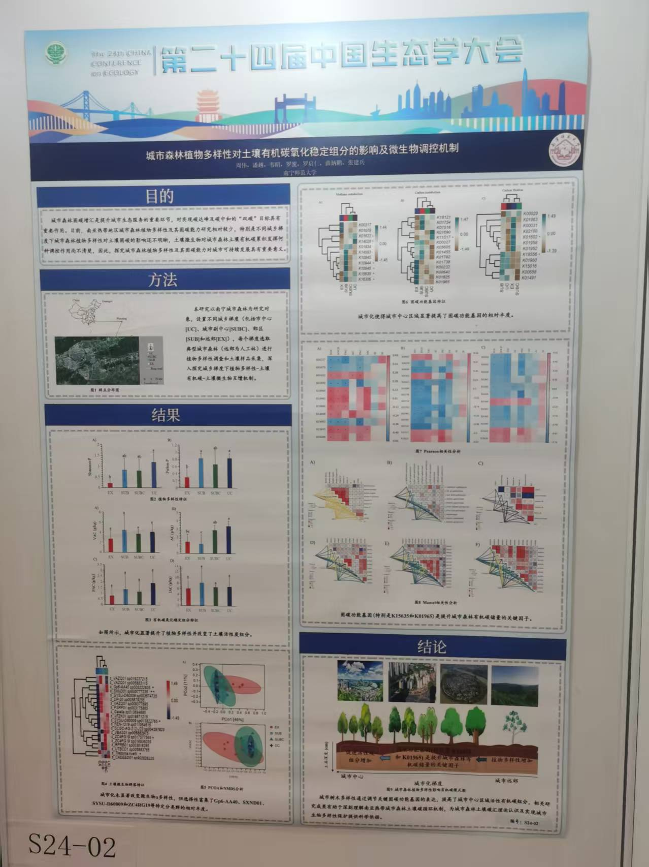 近日,第二十四届全国生态学大会在武汉召开,环境与生命科学学院周伟老师及本科生潘越、韦昭两位同学携学术墙报参会,在众多参展作品的激烈角逐中脱颖而出,成功斩获“优秀墙报奖”,充分展现了学院师生扎实的科研素养与突出的创新能力。