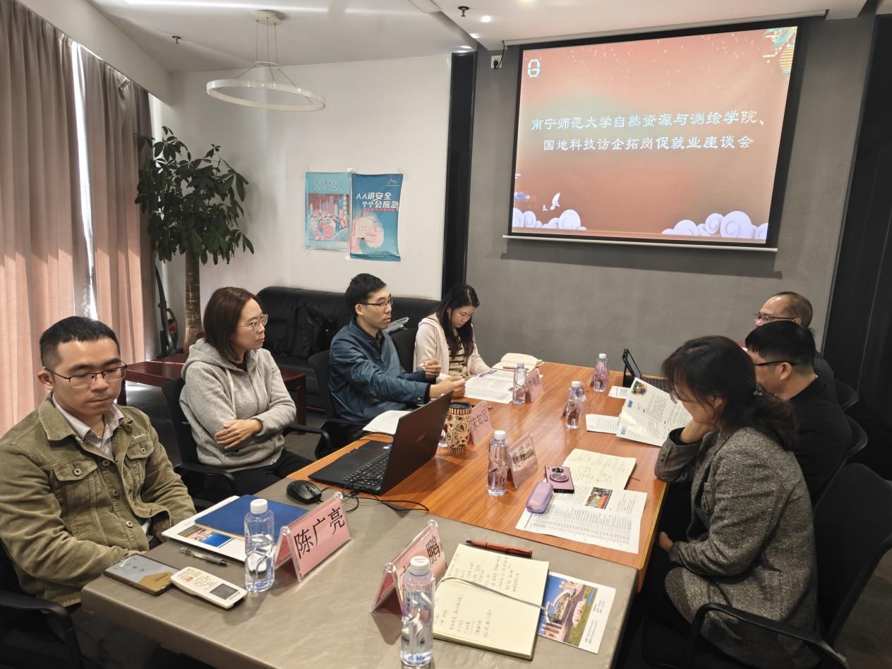 调研团队首站到访国内领先的空间规划与自然资源信息化服务商——广州市国地科技股份有限公司。公司高层管理人员及相关部门负责人对陆汝成院长一行的到访表示热烈欢迎。在座谈交流中,陆汝成介绍了学院的发展历程、学科特色、人才培养成果以及2026届毕业生的基本情况。他着重指出,学院始终坚持以社会需求为导向,致力于培养具备扎实理论基础和卓越实践能力的复合型人才,希望与企业建立更加紧密的合作关系,共同探索人才培养新模式,搭建更广阔的毕业生就业平台。国地科技负责人详细介绍了公司的业务布局、技术优势、发展规划及人才需求,并对best365官网自然资源与测绘学院毕业生的专业素养和能力给予了高度评价。双方围绕产学研协同创新、实习实训基地建设、校园招聘、人才培养等方面进行了深入探讨,并就下一步建立常态化互动机制,共同推动人才链与产业链的有机衔接达成了初步共识。
