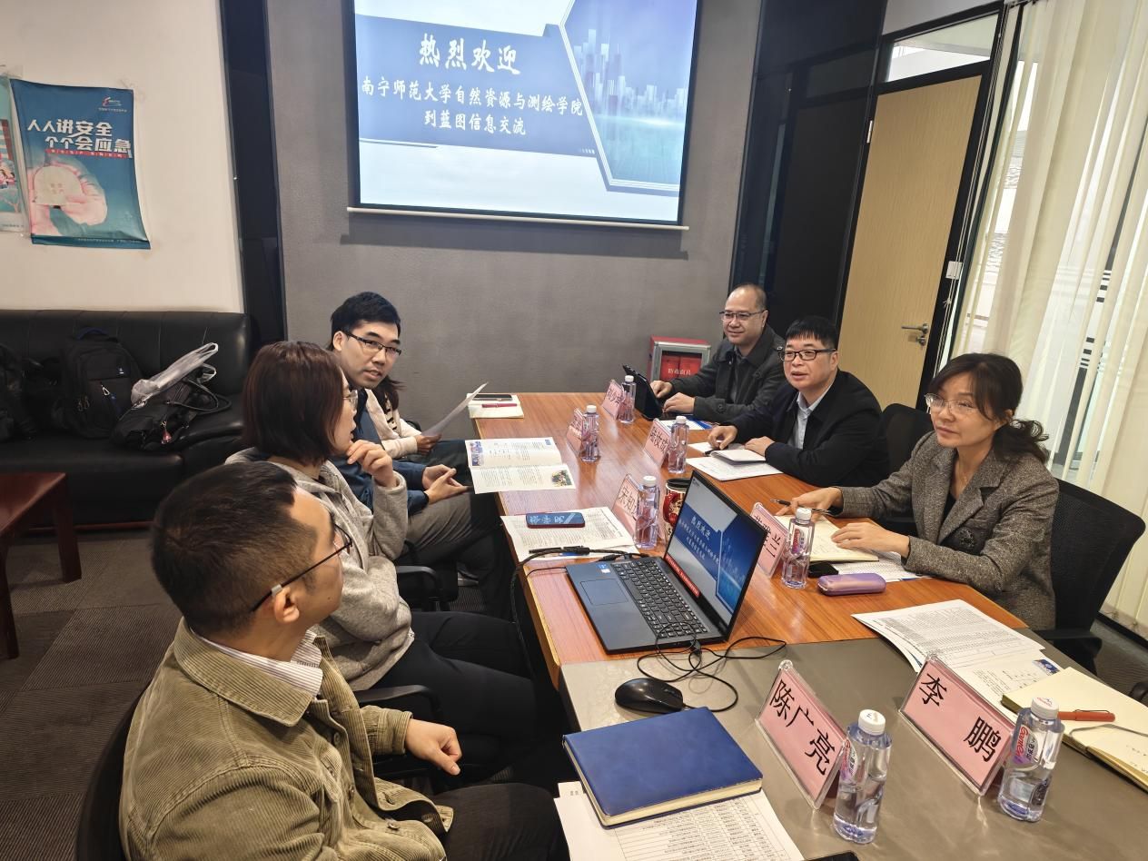 随后,调研团队到访广州蓝图地理信息技术有限公司。蓝图信息作为业内知名的地理信息工程技术与服务提供商,其业务领域与学院专业设置高度契合。在参观企业展厅和技术部门后,双方举行了务实的工作会谈。莫雅兰就学院学生就业意向、职业发展特点与企业进行了沟通,希望企业能为学院学子提供更多优质的实习与就业岗位。土地管理专业系主任刘少坤和、测绘工程专业副主任李鹏则分别结合土地资源管理、测绘工程的专业特点,就课程设置如何更好对接行业前沿技术、实践教学环节如何与企业项目深度融合等议题,与企业技术专家和管理者交换了意见。蓝图信息相关负责人表示,公司正处于快速发展期,对人才持欢迎态度,同时对测绘工程专业岗位人才缺口较大,非常期待能与best365足球官网自然资源与测绘学院建立长期稳定的合作关系,欢迎更多优秀学子加入。