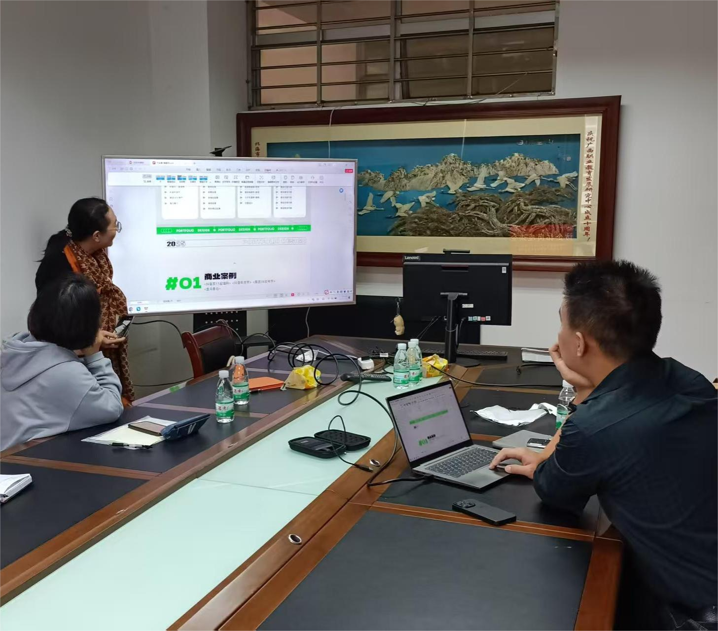该公司吕成总监介绍了杭州市给外地大学生到杭州应聘提供的优惠政策、该公司招聘人员的要求,展示了该公司优秀实习生的作品集,并围绕平面设计、视频创作这两大品类展开了详细讲解。他着重强调,用人单位更看重作品集中所展现的创作全过程以及细节优化思路,而非仅仅展示最终成品,明晰了毕业生优化作品集的方向。他鼓励参会的学生代表把握公司提供的就业实习机会,勇敢走出去,到杭州就业。