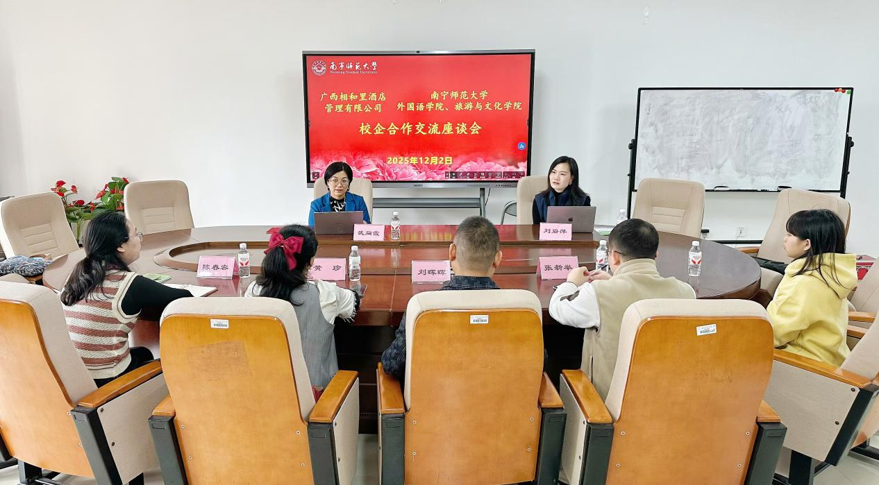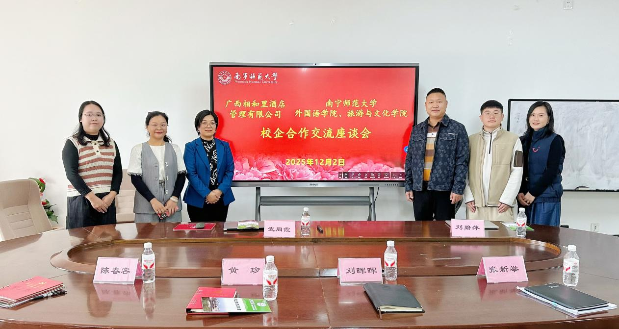 12月2日上午,广西相和里酒店管理有限公司总经理武同霞、总经理助理刘碧萍到访best365官网外国语学院与旅游与文化学院。外国语学院副书记刘晖晖、旅游与文化学院副书记黄珍及相关学院就业负责人接待,双方重点对接就业实习基地建设及校企深度合作事宜。