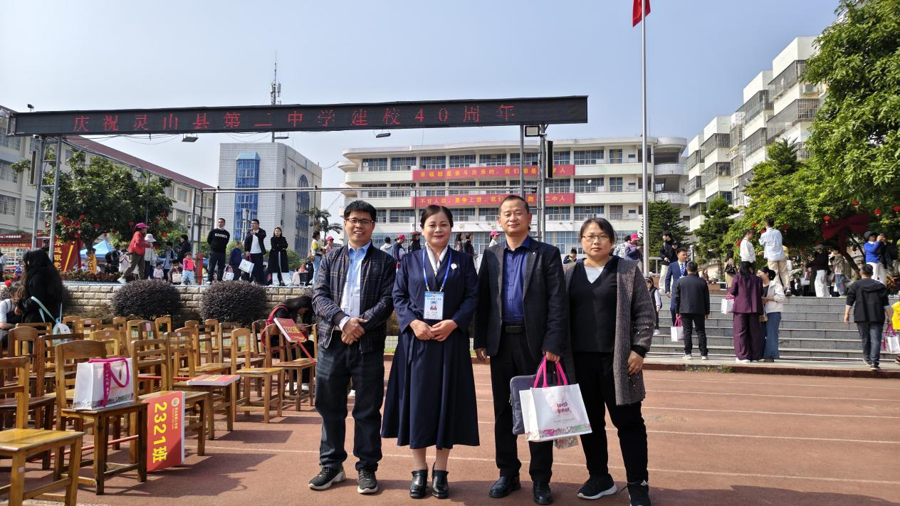 12月6日上午,灵山县第二中学建校40周年高质量发展大会隆重举行。主持法学与社会学院行政工作的副院长吴少进和历史系主任刘方富、副主任蔡宛平参加大会。