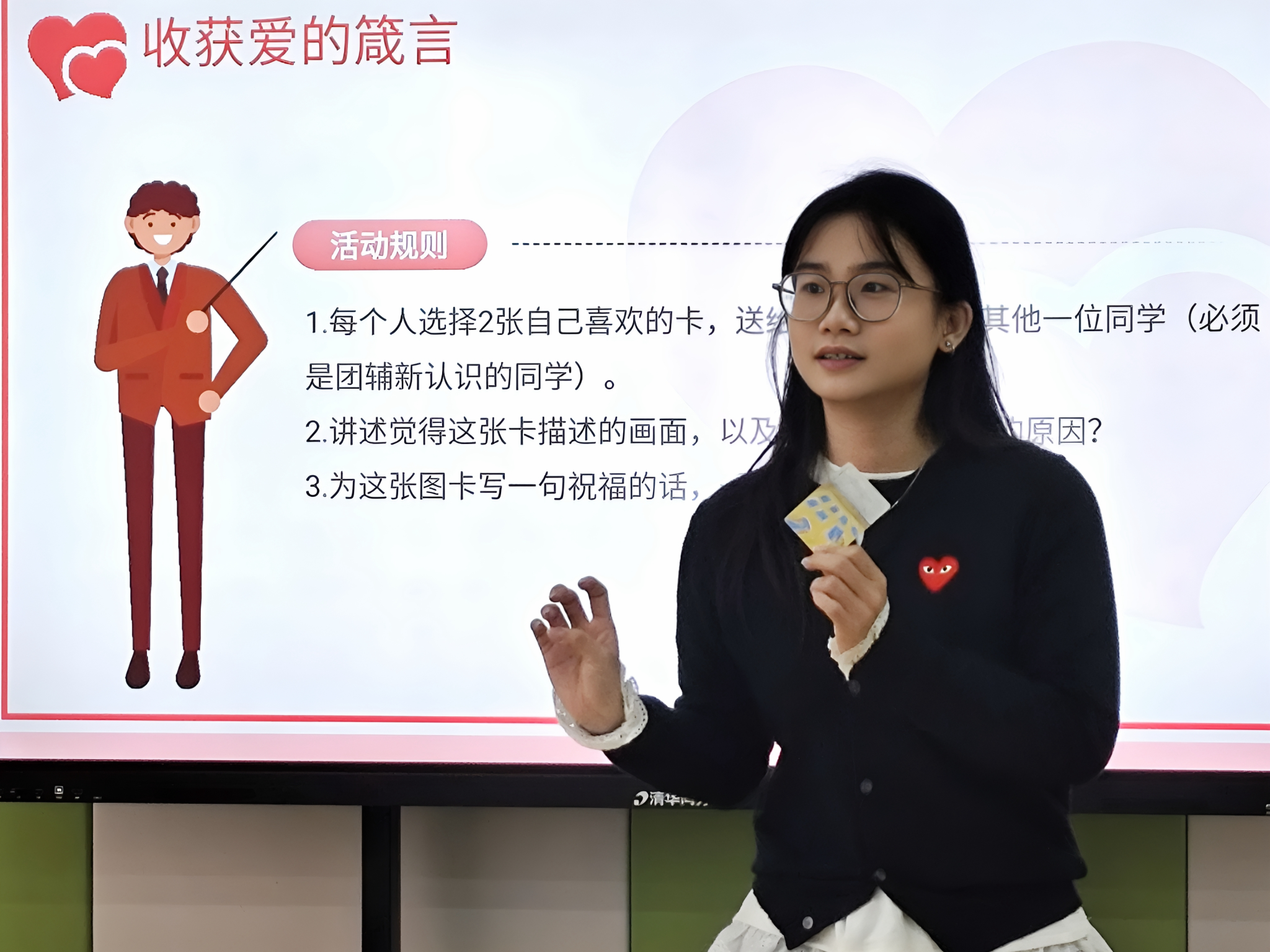 活动围绕“认知—觉察—行动—分享”的逻辑主线,精心设计了五个层层深入、形式活泼的互动环节。“丢球破冰”游戏以轻松有趣的方式迅速拉近彼此距离,同学们在接球与自我介绍中快速融入团体;“打开爱的指南”环节,大家通过选择与解读图卡,尽情表达对爱情的初步理解与情感联想;“查看爱的索引”借助OH卡牌工具,帮助学生在喜欢与不喜欢的分类梳理中,清晰觉察自身情感偏好与内在心理需求;“解锁爱的地图”引导学生从卡牌启示中提炼行动方向,深入思考如何在实际生活中满足自我情感需要;最后的“收获爱的箴言”环节,同学们互赠卡牌、传递祝福,在真诚交流中凝结团体情感,深化心灵共鸣。整场活动中,同学们在安全、支持的氛围里坦诚表达、认真倾听,在互动体验中不断深化对爱情与自我的认知。