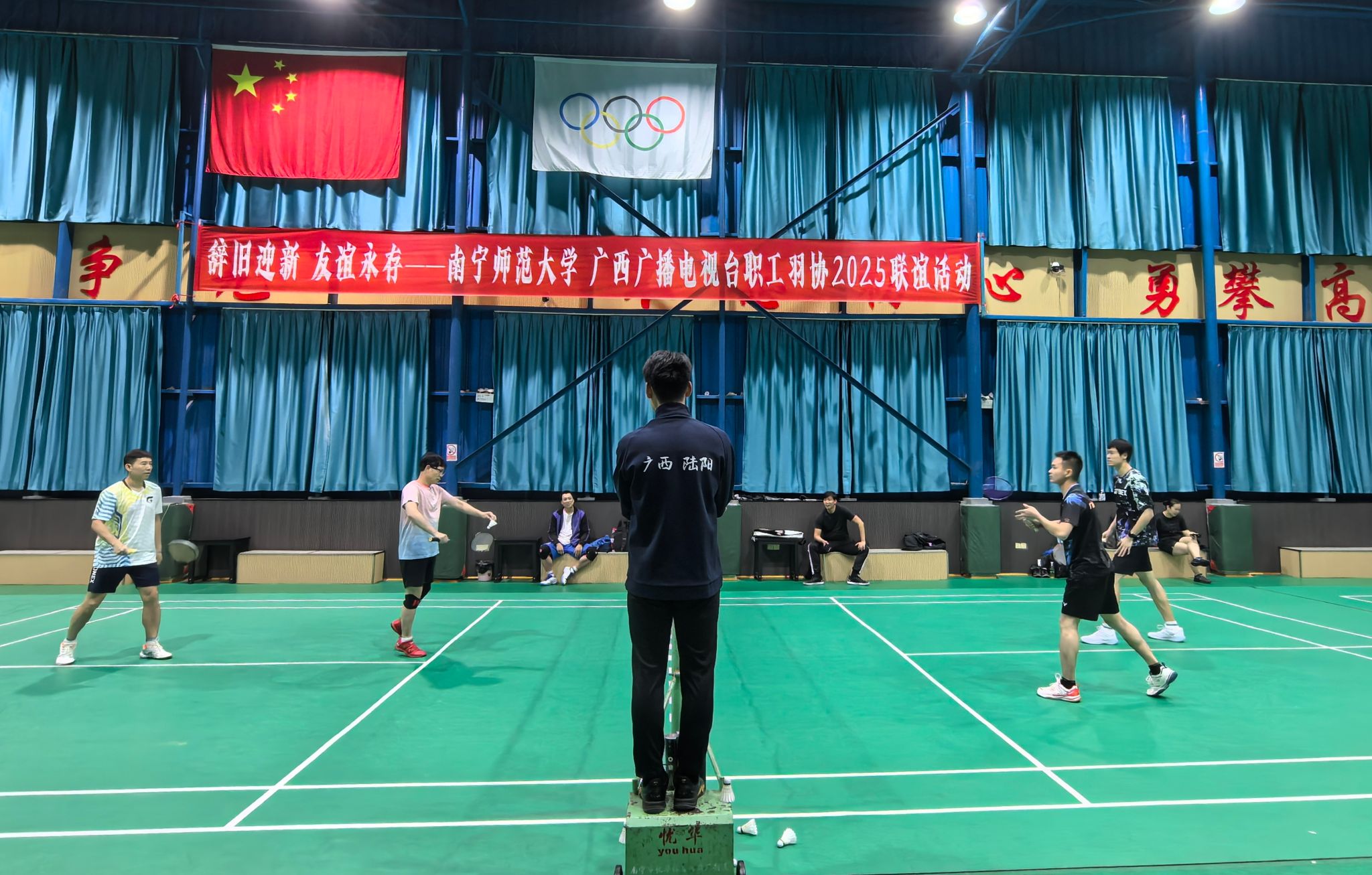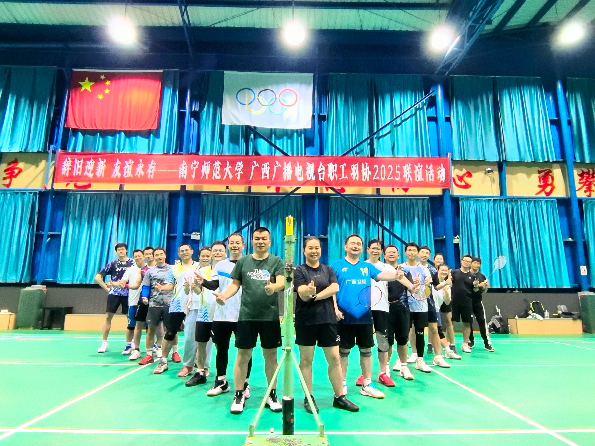 本次活动特邀广西羽毛球陆阳俱乐部的资深教练提供现场指导。活动伊始,双方进行了简短交流,随后通过抽签完成组队。本次联谊赛打破传统对抗形式,采取混合编组的方式,真正实现了“我中有你,你中有我”的联谊意义。